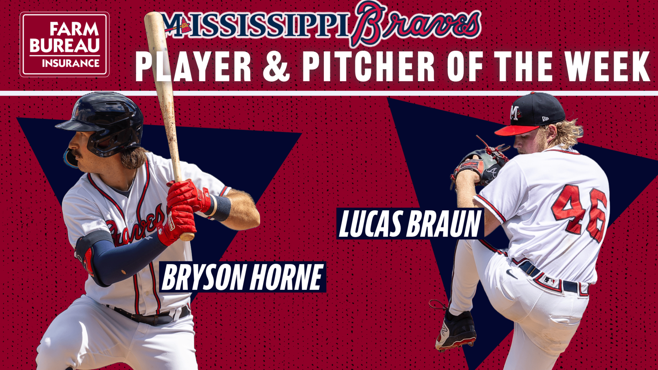 PEARL, MS (August 26, 2024) — The Mississippi Braves and Farm Bureau proudly announce that RHP Lucas Braun and INF Bryson Horne have been named Farm Bureau Pitcher and Player of the Week for August 20-25.