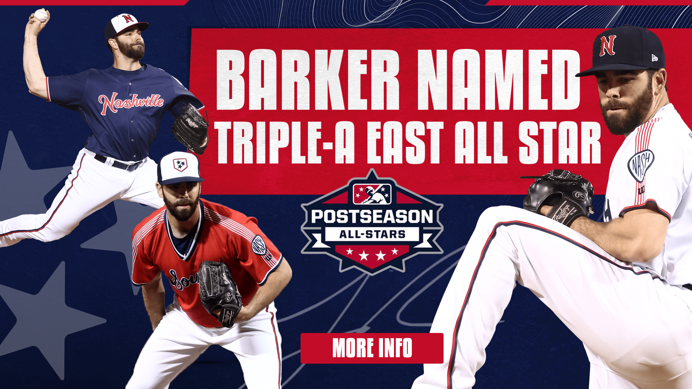 Nashville Sounds closer Luke Barker was named to the Triple-A East All-Star team as announced by Minor League Baseball today. The team is selected through voting by broadcasters, Minor League Baseball executives and select members of the media.