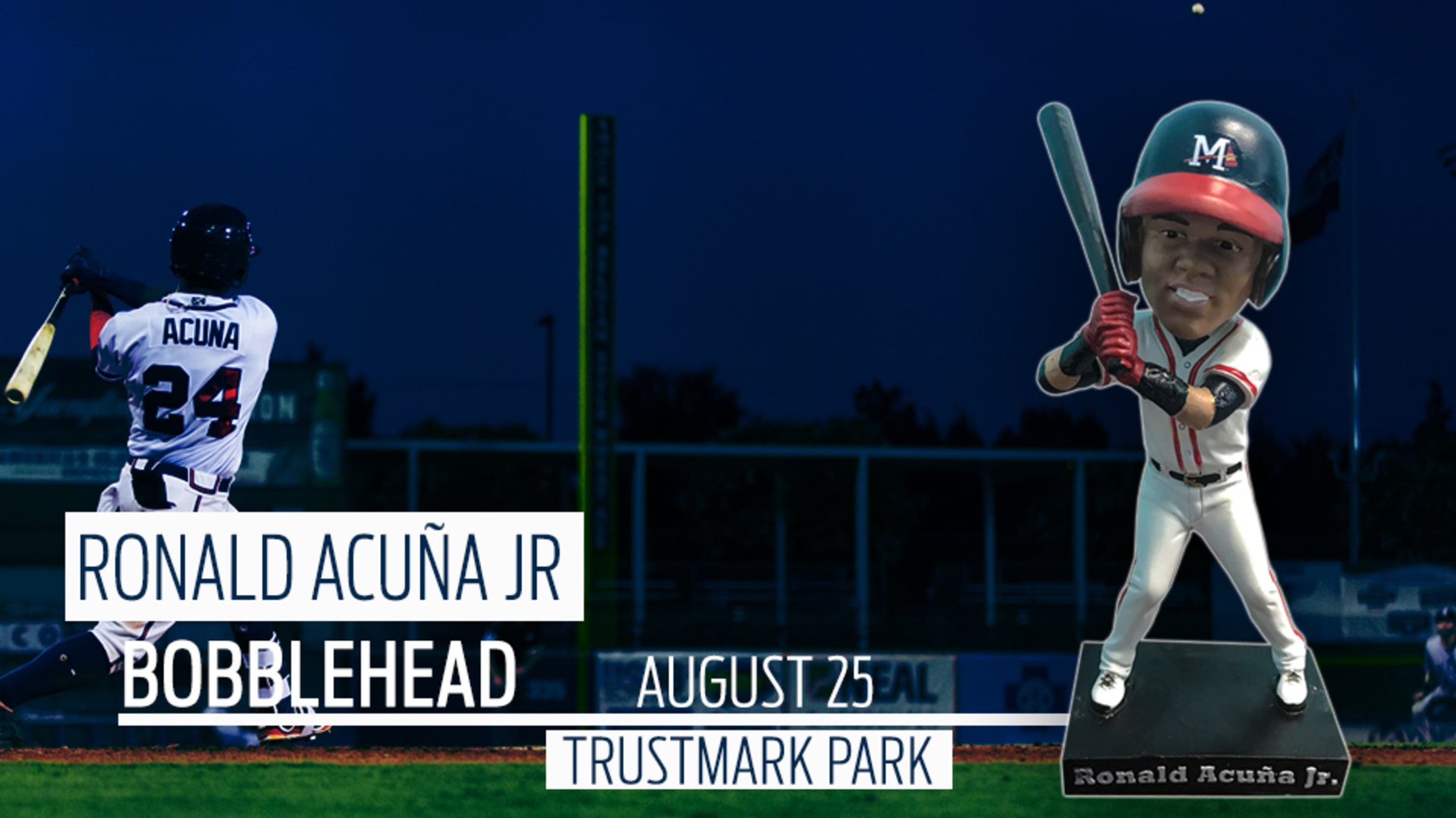M-Braves Announce Ronald Acuña Jr. Bobblehead Giveaway on Saturday, August 25 The first 1,500 fans will receive this collectible Acuña bobbleheaded, commemorating his 2017 stint with the Mississippi Braves. By Chris Harris August 15, 2018 Facebook Share X Share Email Copy Link Read More: Mississippi Braves