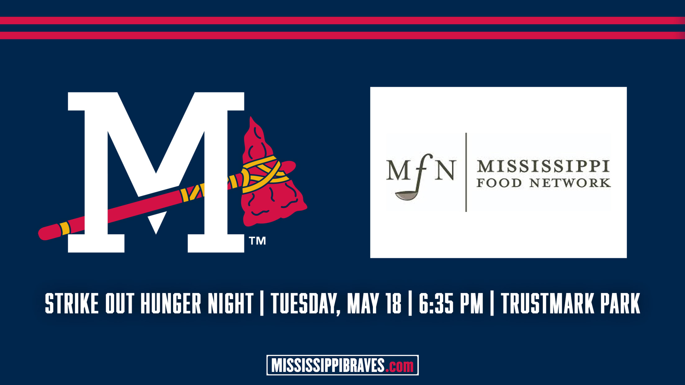 PEARL, MS - The Mississippi Braves and Mississippi Food Network are partnering for the first of two "Strike Out Hunger" Nights on Tuesday, May 18, at Trustmark Park.