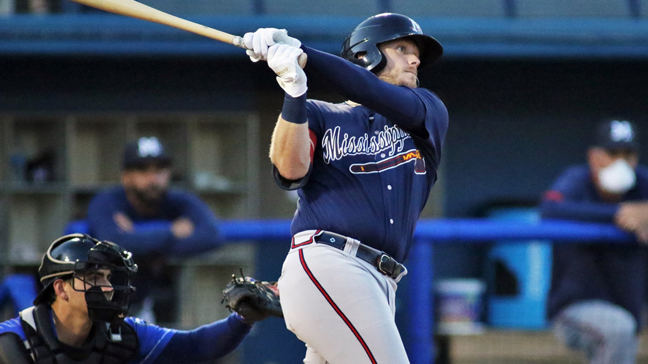 PHOTO BY MIKE KREBS BILOXI, MS - The Mississippi Braves matched a club record with seven home runs on Thursday night, including three by Greyson Jenista in a 16-8 thumping of the Biloxi Shuckers at MGM Park. Playing for the first time in nine days, the M-Braves lowered their magic