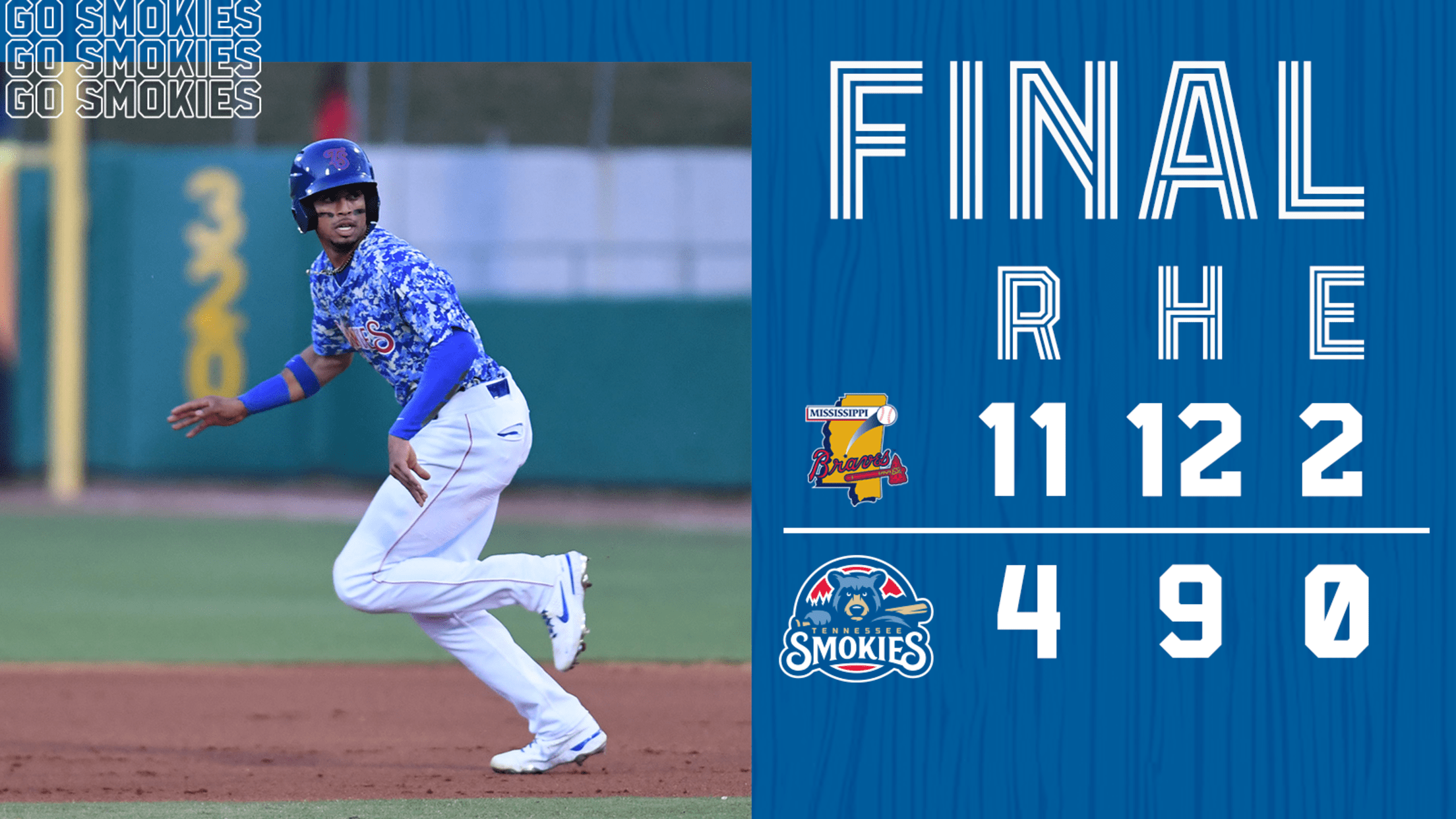 SEVIERVILLE, TN - The Tennessee Smokies (24-33) dropped their series opener to the Mississippi Braves (38-23) Tuesday night, 11-4, at Smokies Stadium.