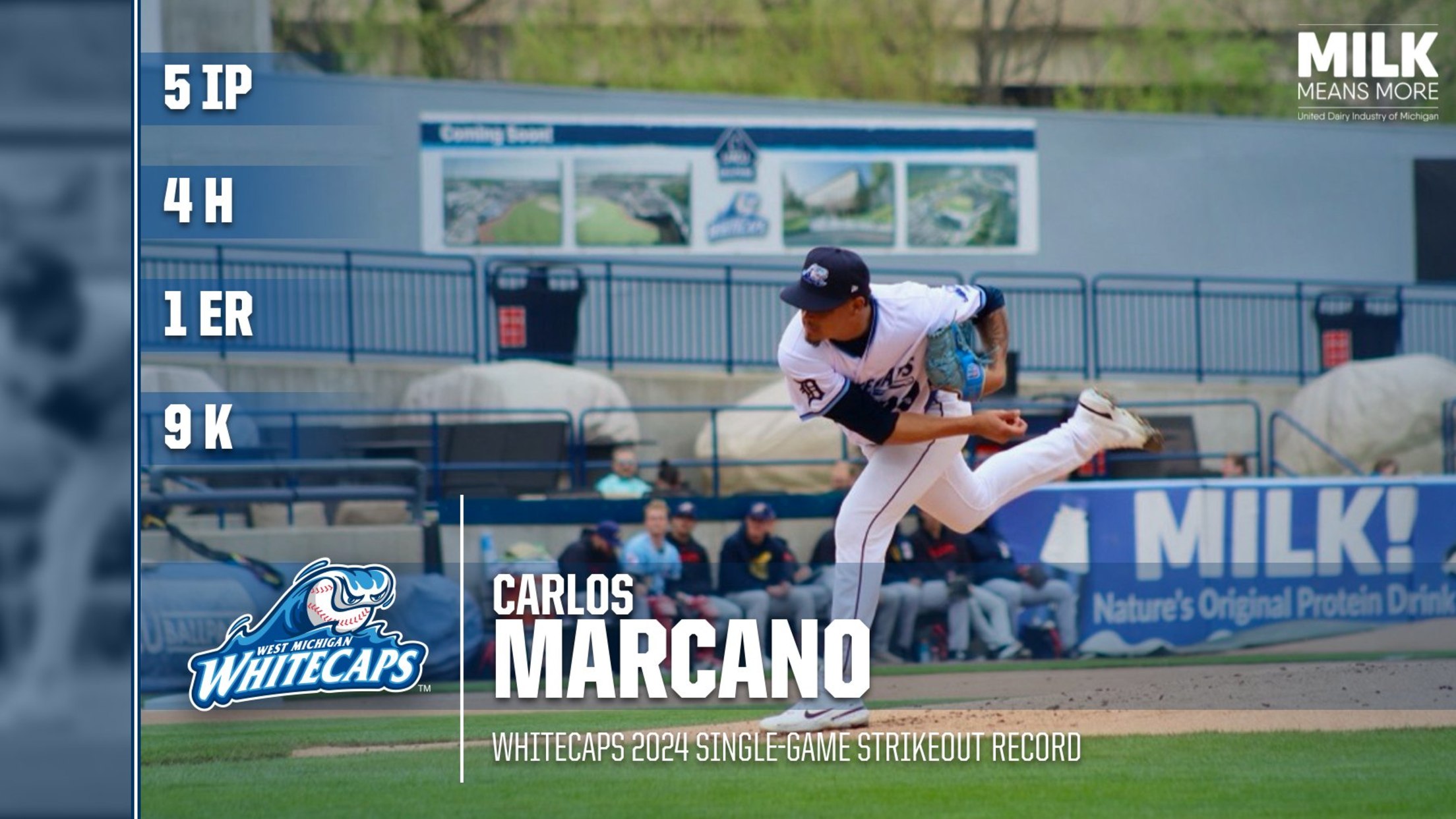 The lone bright spot for West Michigan came on the mound, as Marcano tossed five excellent and tied his career high while setting a Whitecaps season record with nine strikeouts in the contest. The Whitecaps committed four errors in the ballgame and have watched their offense go silent, collecting just four base hits and only seven total hits in their past two games with three total runs, heading into their series finale on Sunday, needing a victory to finish the series with a split of their six-game set with South Bend.
