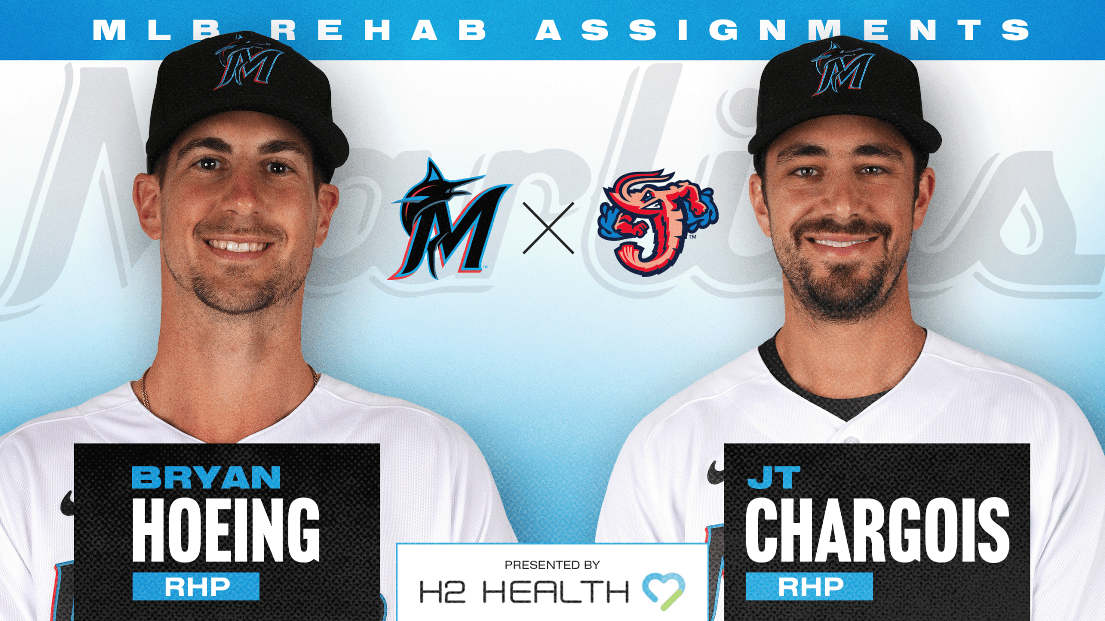 JACKSONVILLE, Fla. – Miami Marlins’ right-handers JT Chargois and Bryan Hoeing will begin injury rehabilitation assignments, presented by H2 Health for the Jacksonville Jumbo Shrimp this week, when they take on the Gwinnett Stripers from Coolray Field.