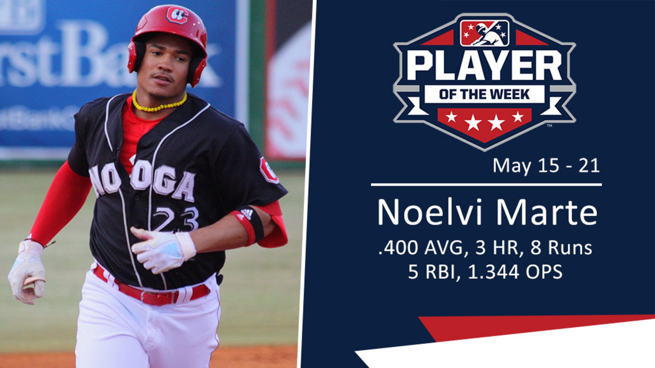 CHATTANOOGA, Tenn. –Minor League Baseball has announced that Chattanooga Lookouts infielder Noelvi Marte has been named Southern League Player of the Week for May 15-21. This is the second time this season Marte has been named the Player of the Week (May 1-7).