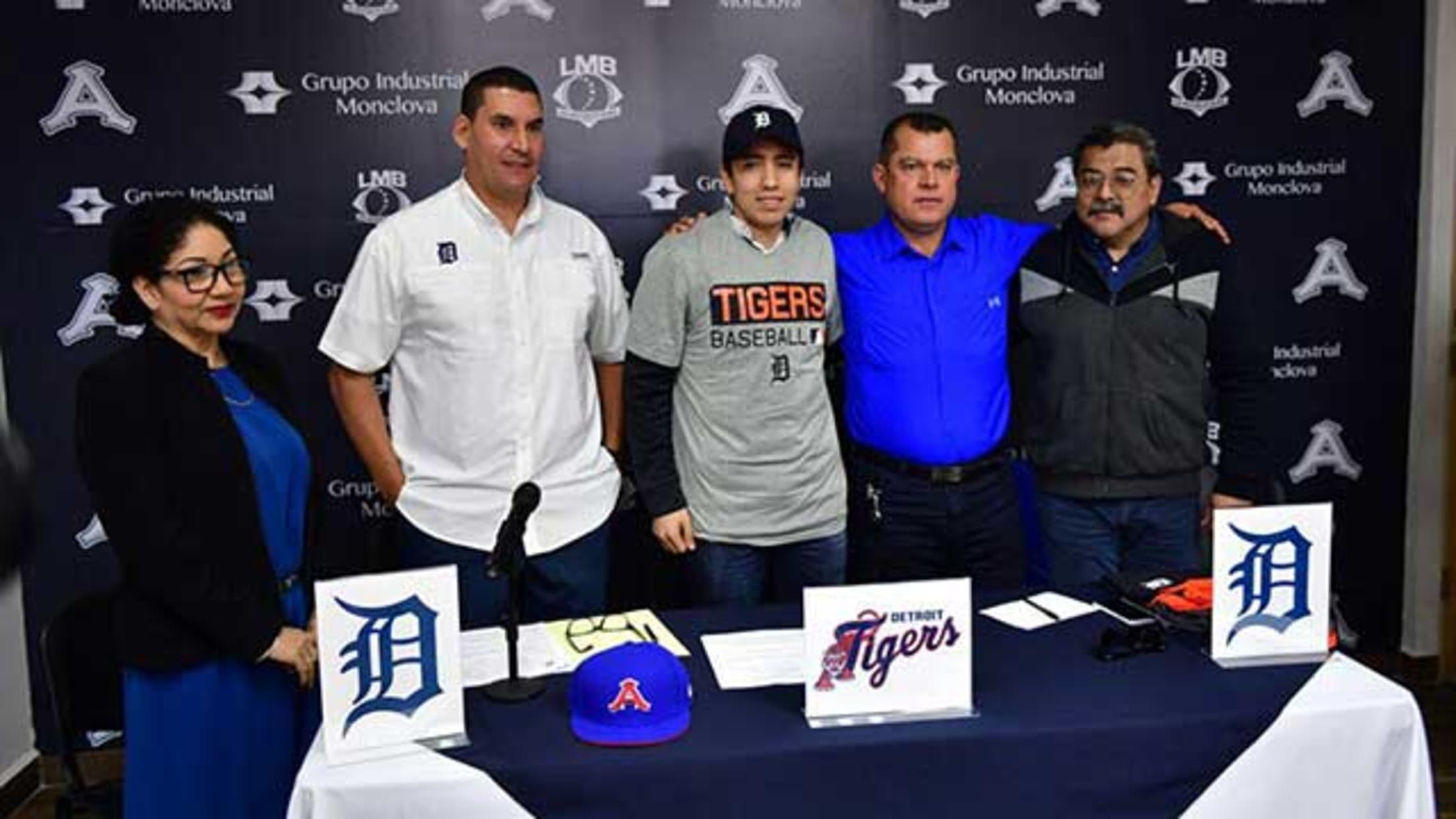 Monclova, Coah. (www.acereros.com.mx / Víctor José Vizcarra), 11 de enero.- El prospecto de los Acereros del Norte y lanzador Martín Herrera, fue firmado y presentado ante los medios en conferencia de prensa por la organización de los Tigres de Detroit la mañana de este jueves en el Estadio Monclova.