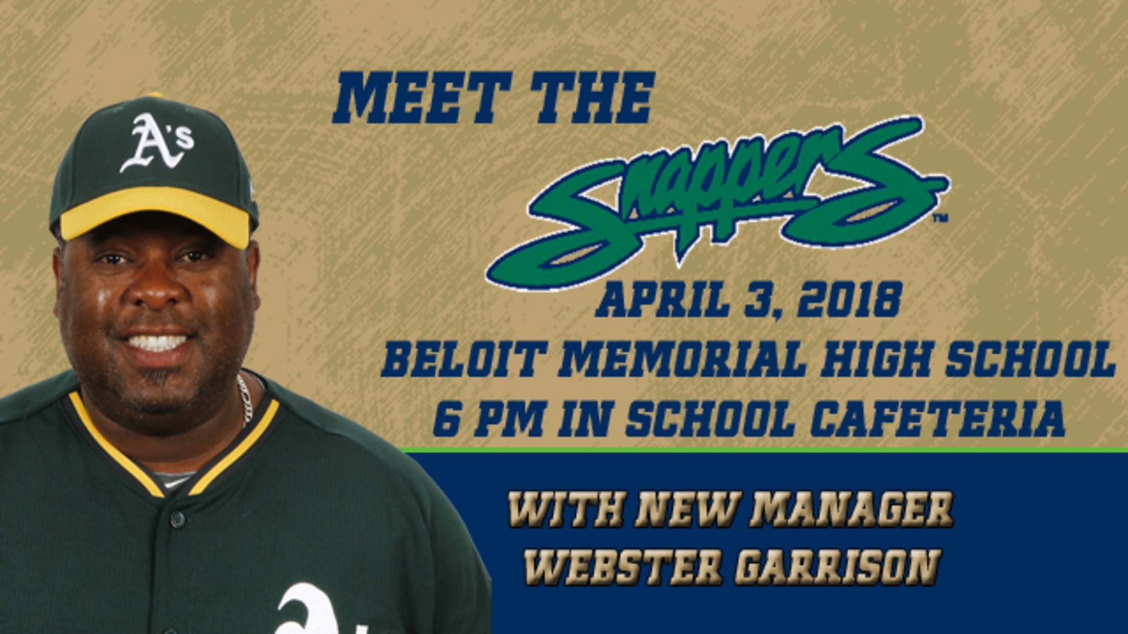 The annual "Meet the Snappers" event will take place Tuesday April 3, 2018, the Beloit Snappers announced Tuesday. This year's meet and greet will take place once again at Beloit Memorial High School (1225 Fourth Street, Beloit) in the Cafeteria. Doors will open up to the public at 6:00 p.m.