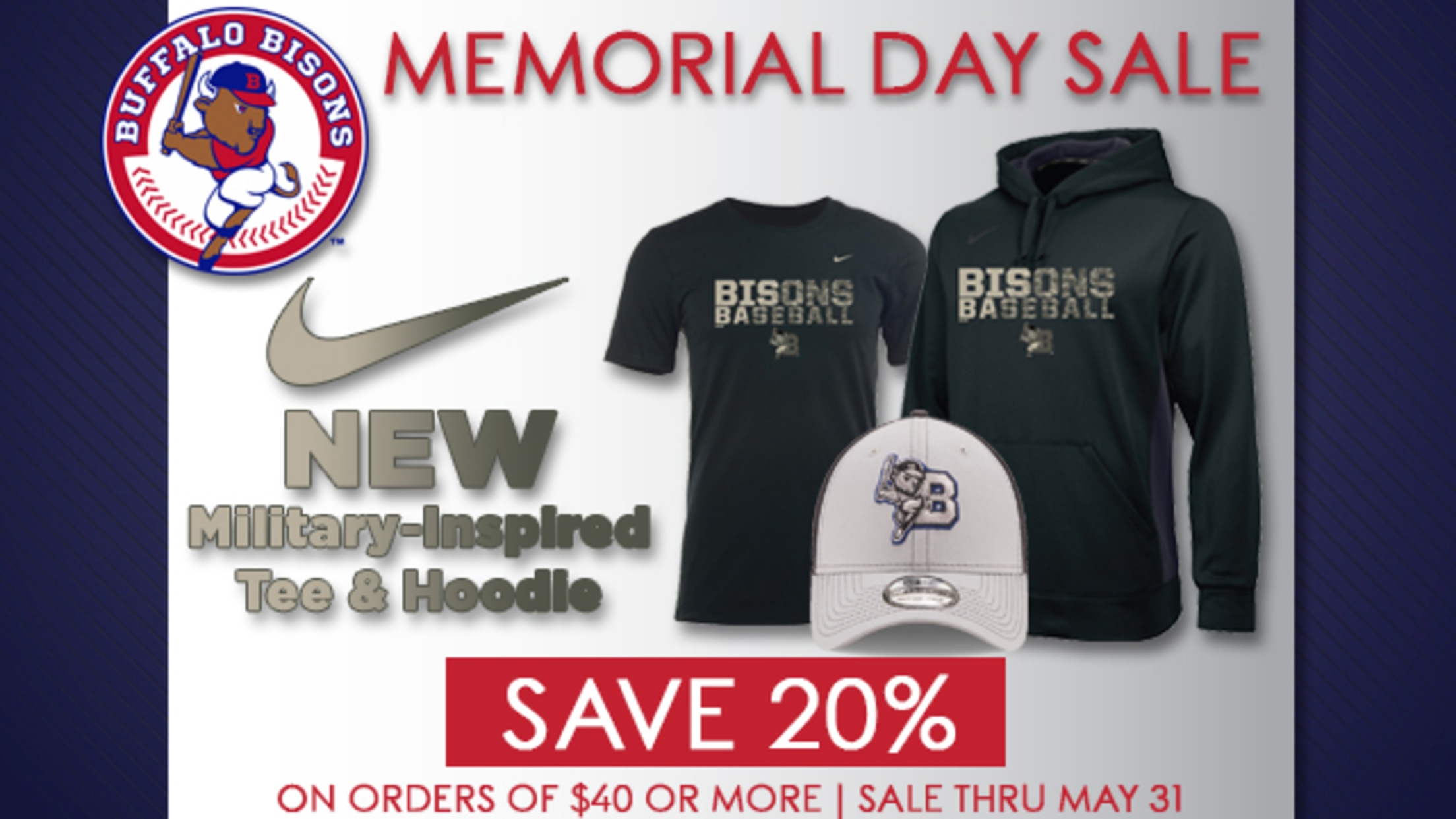 The Bisons Memorial Day Sale is here and now through the end of the month, you can SAVE 20% on all your online shop orders of $40 or more! All you need is the promo code MEMORIAL17 to take advantage of this great deal.