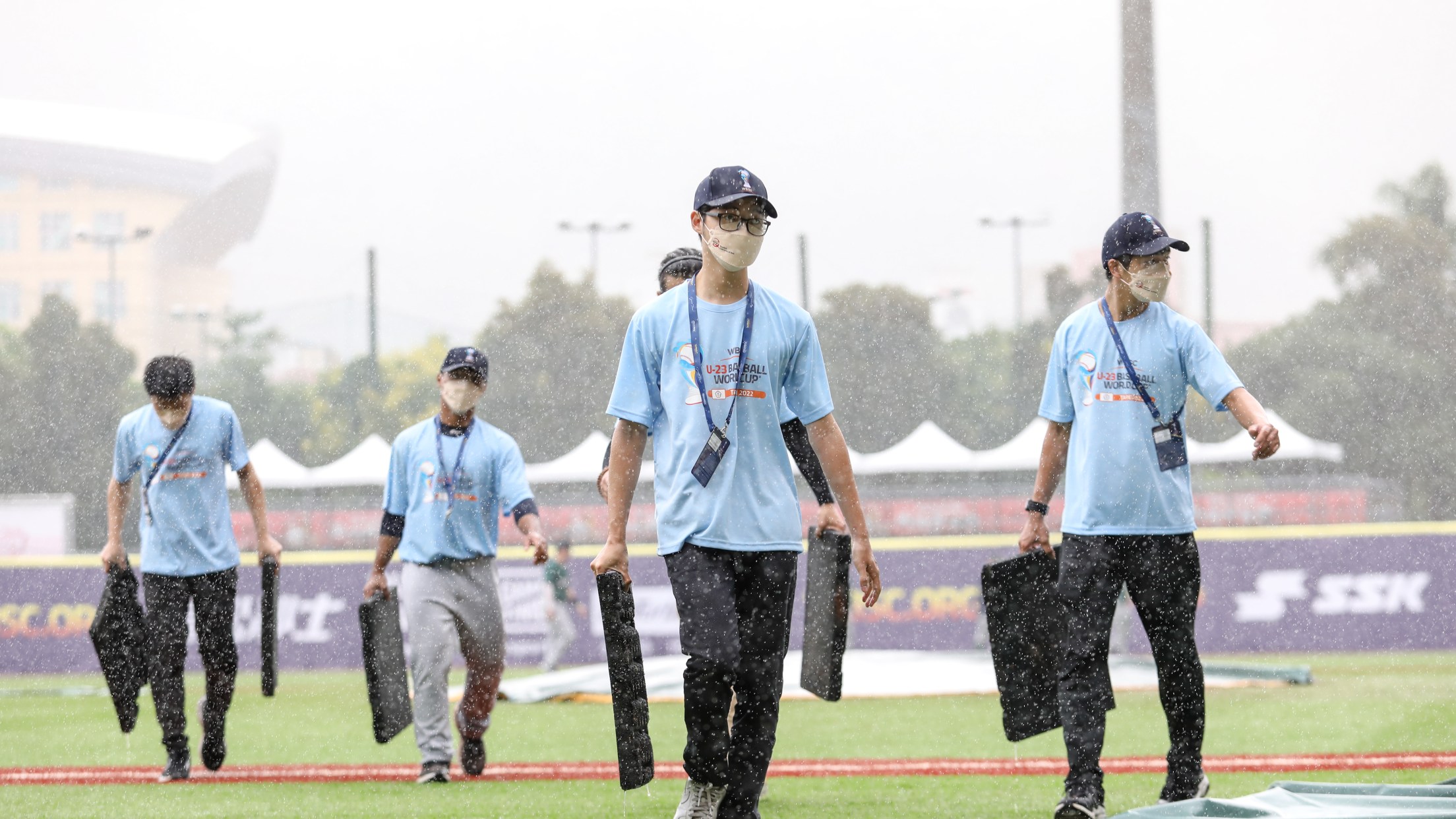 Ciudad de México (www.lmb.com.mx / Leopoldo Ramírez Quezada) 15 de octubre de 2022.- El juego entre México y Corea del Sur, perteneciente al Grupo B de la Copa del Mundo Sub 23, fue pospuesto debido a la lluvia en el Taipei Tianmu Baseball Stadium, en China Taipéi.