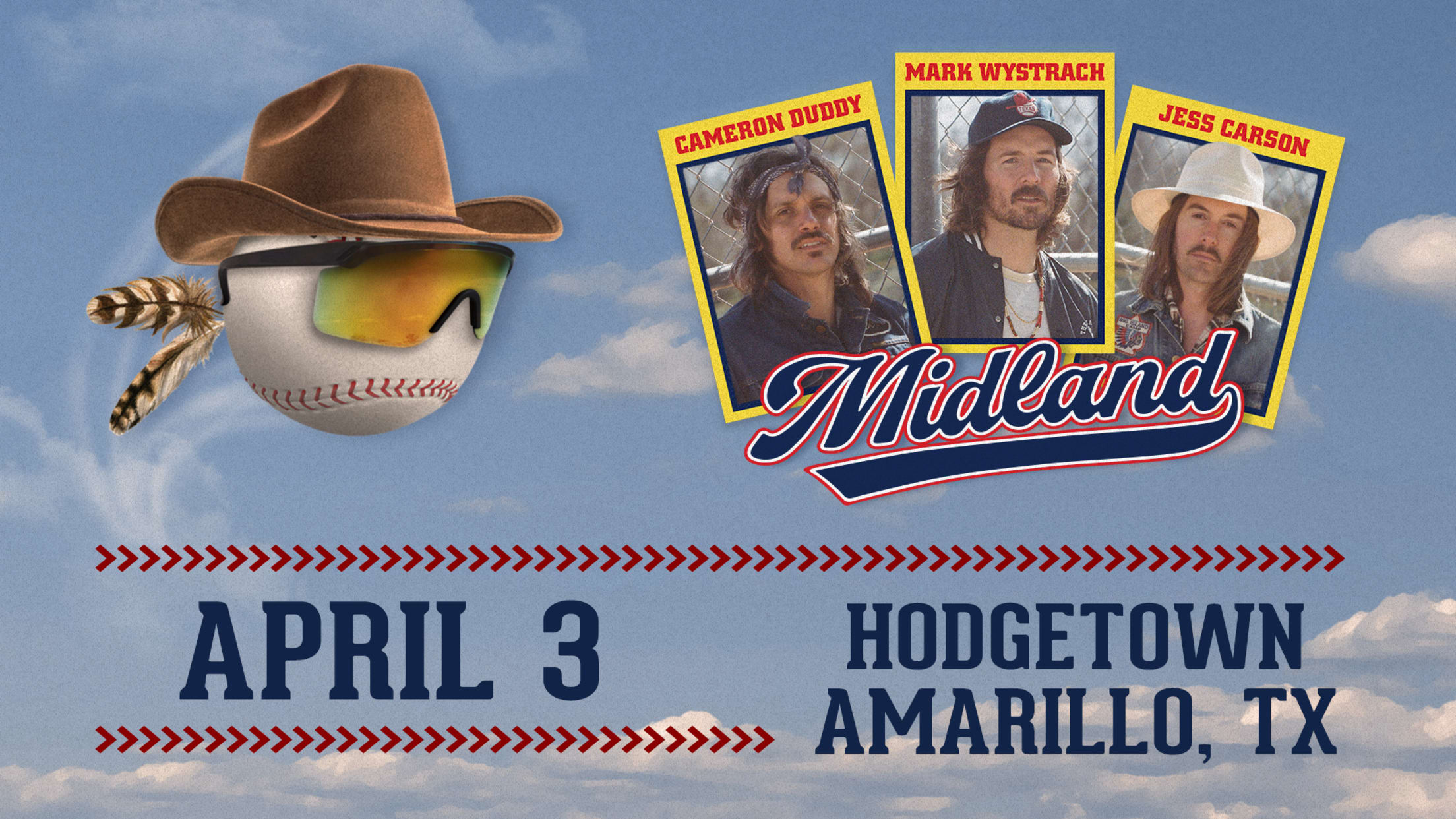 Ballpark Music and the Amarillo Sod Poodles are excited to announce that country music superstars Midland will be performing at HODGETOWN on Saturday, April 3 to cap off their five-show Texas tour. Gates are scheduled to open at 6:00 p.m. Tickets will go on sale Thursday, January 14 at 9:00
