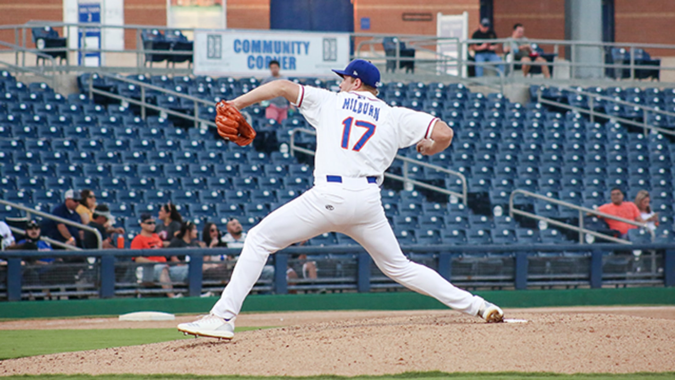 Frisco got back-to-back two-out singles in the fifth, but Milburn got Lopes to fly out to end the inning. An around-the-horn double play helped him keep Frisco off the board in the sixth, but the RoughRiders broke up the shutout with an unearned run on Michael D Leon's RBI double in the seventh (an error by shortstop