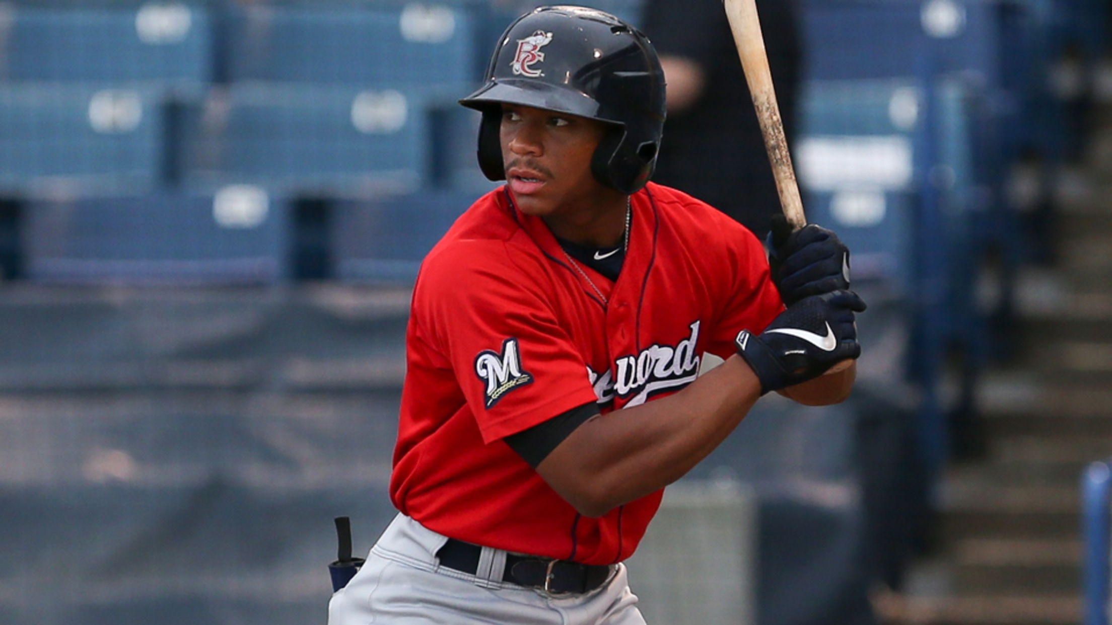 Milwaukee's No. 2 prospect -- out of competitive ball since undergoing surgery to repair a meniscus tear in his left knee in October -- raced around the bases for a triple in his first at-bat Sunday and wound up 2-for-5 with a steal and a run scored in Class A Advanced Carolina's 8-3 win over visiting Frederick.