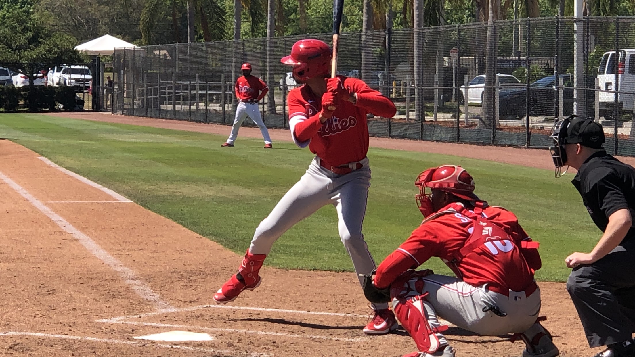 CLEARWATER, Fla. – With most of the major league squad in Lakeland, the Phillies minor took a full day for drills and intrasquad games at the Carpenter Complex in Clearwater. Drills began in the mid-morning, putting the emphasis on defense with the catchers starting work on framing and pop-up drills.