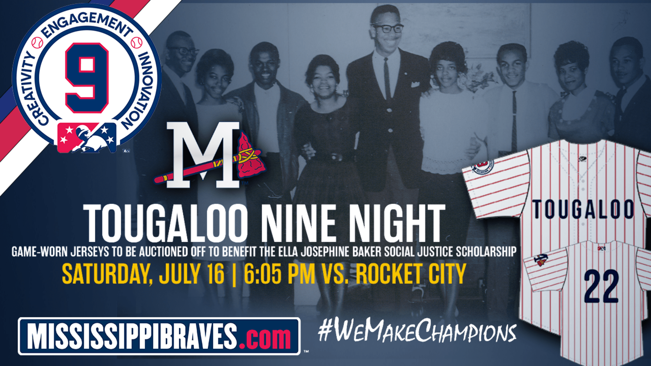 PEARL, MS - In conjunction with Minor League Baseball's initiative "The Nine", on Saturday, July 16, when the Mississippi Braves take on the Rocket City Trash Pandas at Trustmark Park, the team will be honoring the brave students that made up the historic Tougaloo Nine.