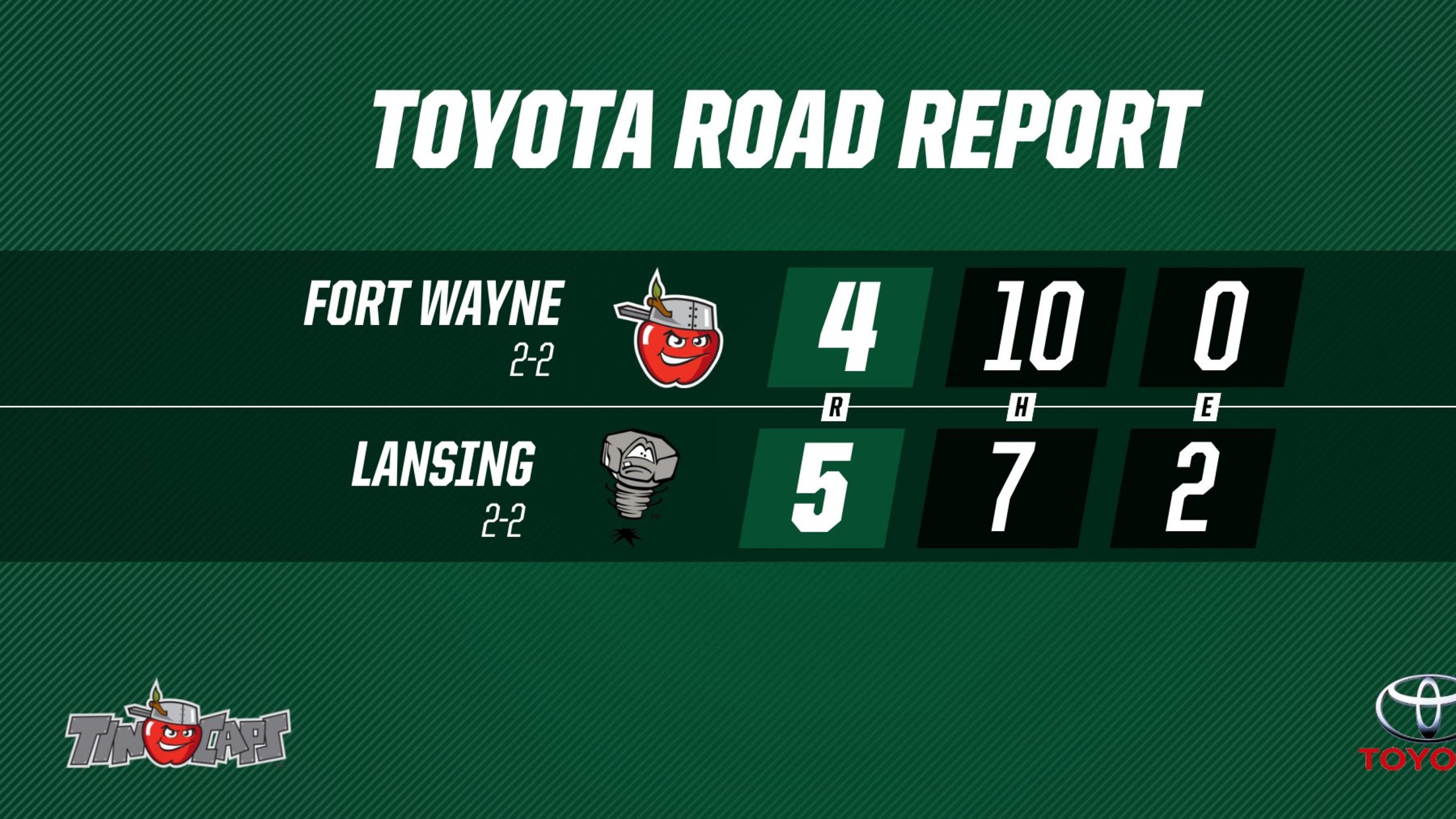Lansing completed their rally with two runs in the bottom of the ninth inning. Alejandro Kirk singled to start the frame and was immediately lifted for a pinch-runner (Reggie Pruitt). Then, the Lugnuts perfectly executed a hit-and-run, putting Ryan Gold on first base with a single and Pruitt at third. An intentional walk, a wild pitch, a hit-by-pitch, another international walk, and another hit-by-pitch produced the two runs that gave Lansing the victory.