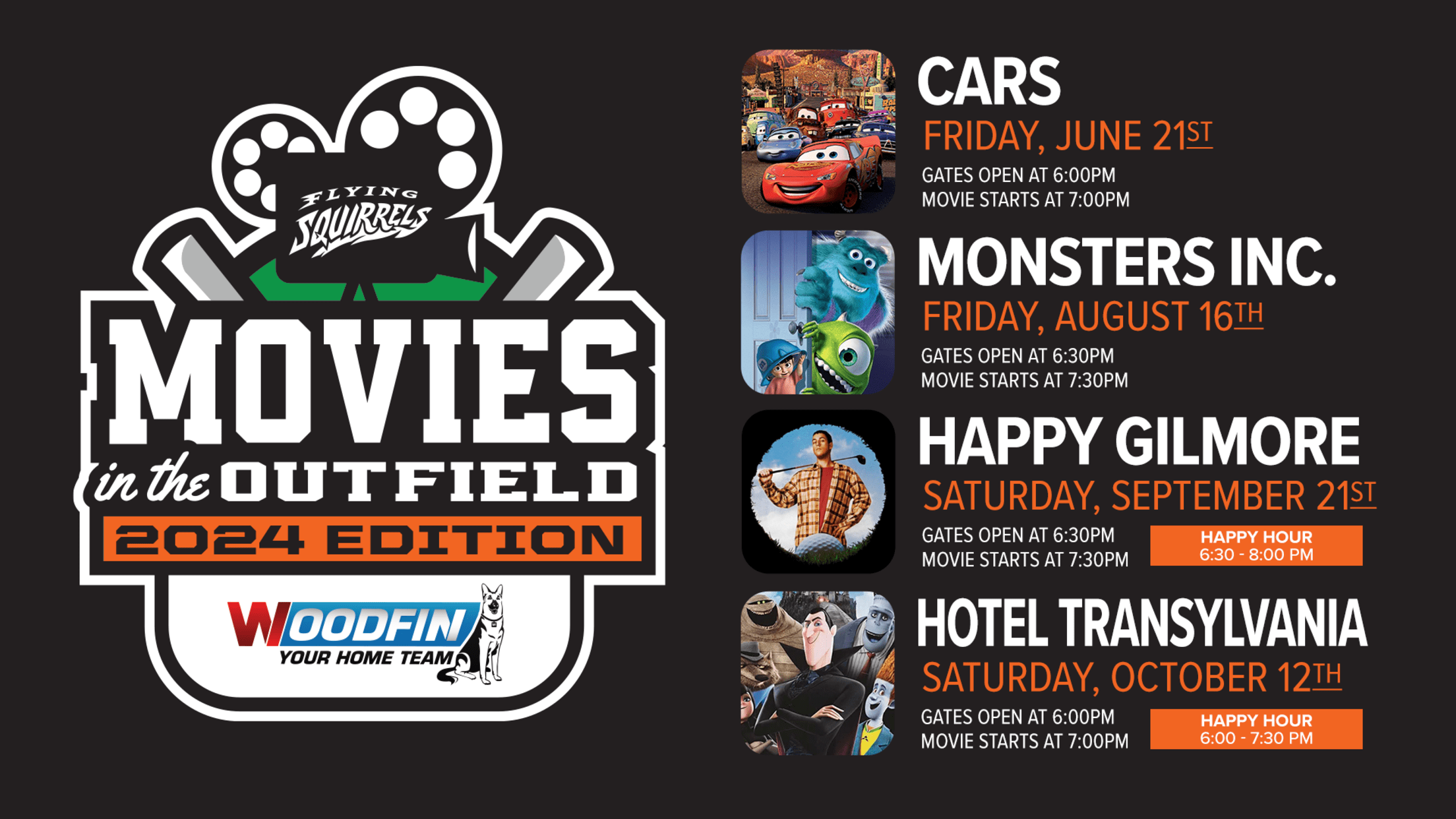Tickets and more information are available online at SquirrelsBaseball.com/Movies, by phone at 804-359-FUNN (3866) or in person at the Flying Squirrels ticket office.