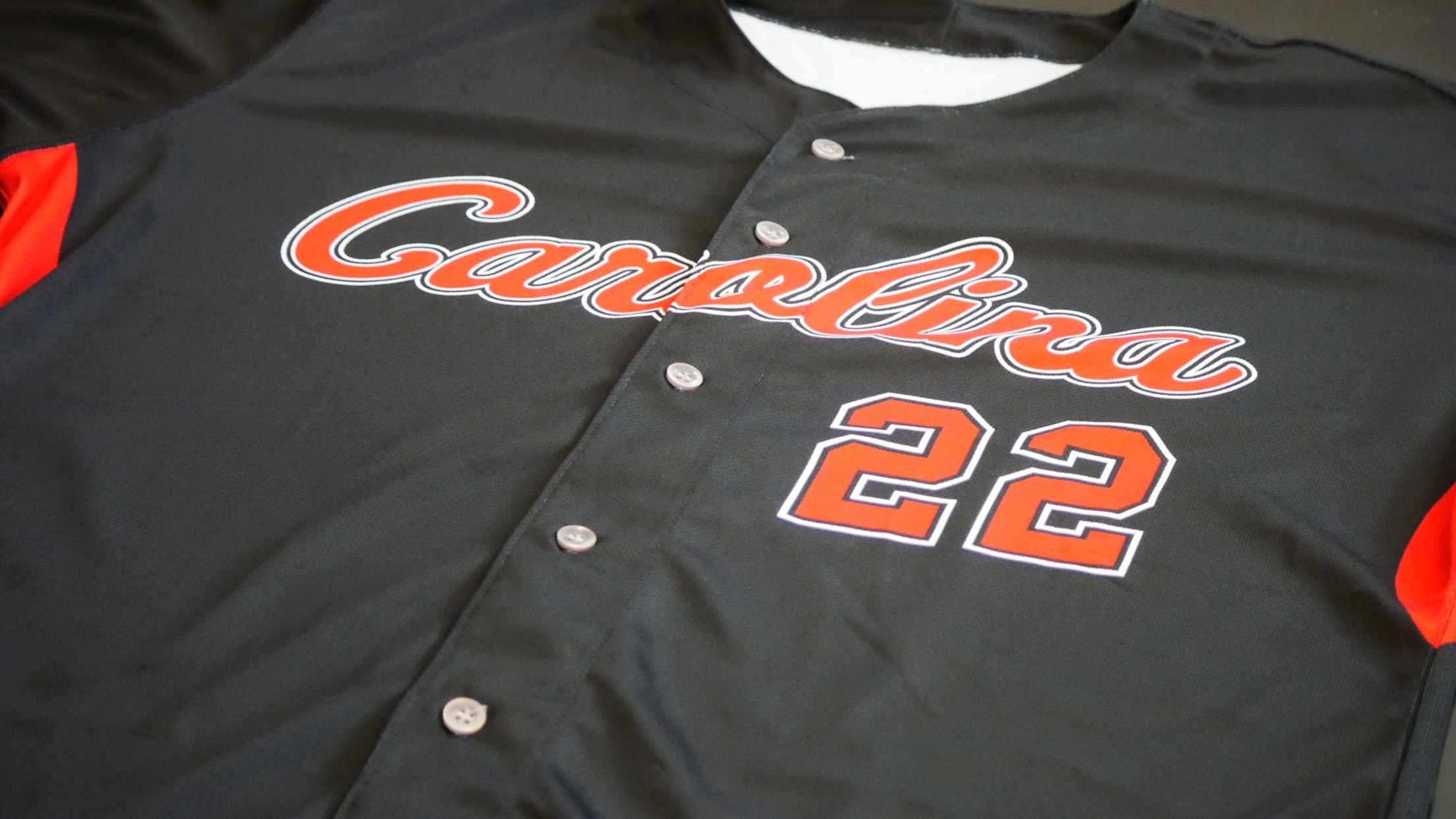 The new “blackout” game jerseys are black in color with red numbers, “Carolina” scripted in red across the chest, and the Mudcats logo on the left sleeve. This new jersey marks the first for the Mudcats to feature "Carolina" on the jersey front.