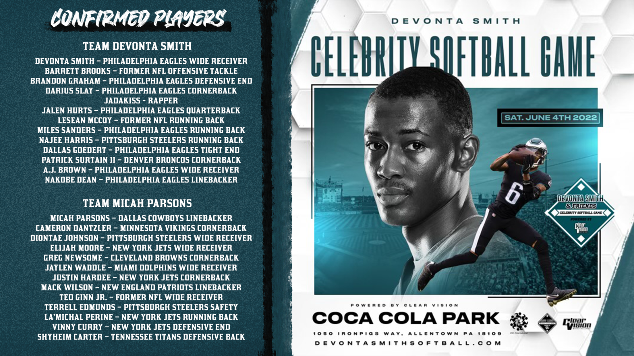 The Celebrity Softball Game will feature Team DeVonta Smith vs. Team Micah Parsons Allentown, Pennsylvania (12 May 2022) – The Lehigh Valley IronPigs and Clear Vision Marketing Group have announced multiple new additions to the DeVonta Smith Celebrity Softball Game at Coca-Cola Park on Saturday, June 4. Further announcements regarding