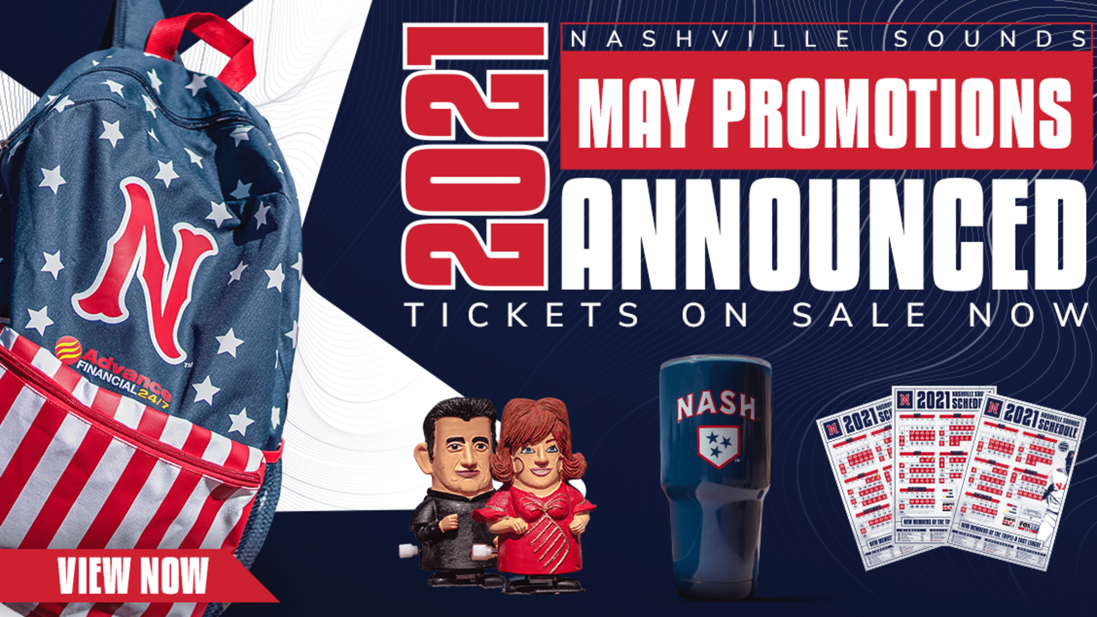 The Nashville Sounds Baseball Club announced today the promotions schedule for all games in the month of May at First Horizon Park. The Sounds host the Memphis Redbirds (St. Louis Cardinals) from May 11-16 and the Gwinnett Stripers (Atlanta Braves) from May 18-23.