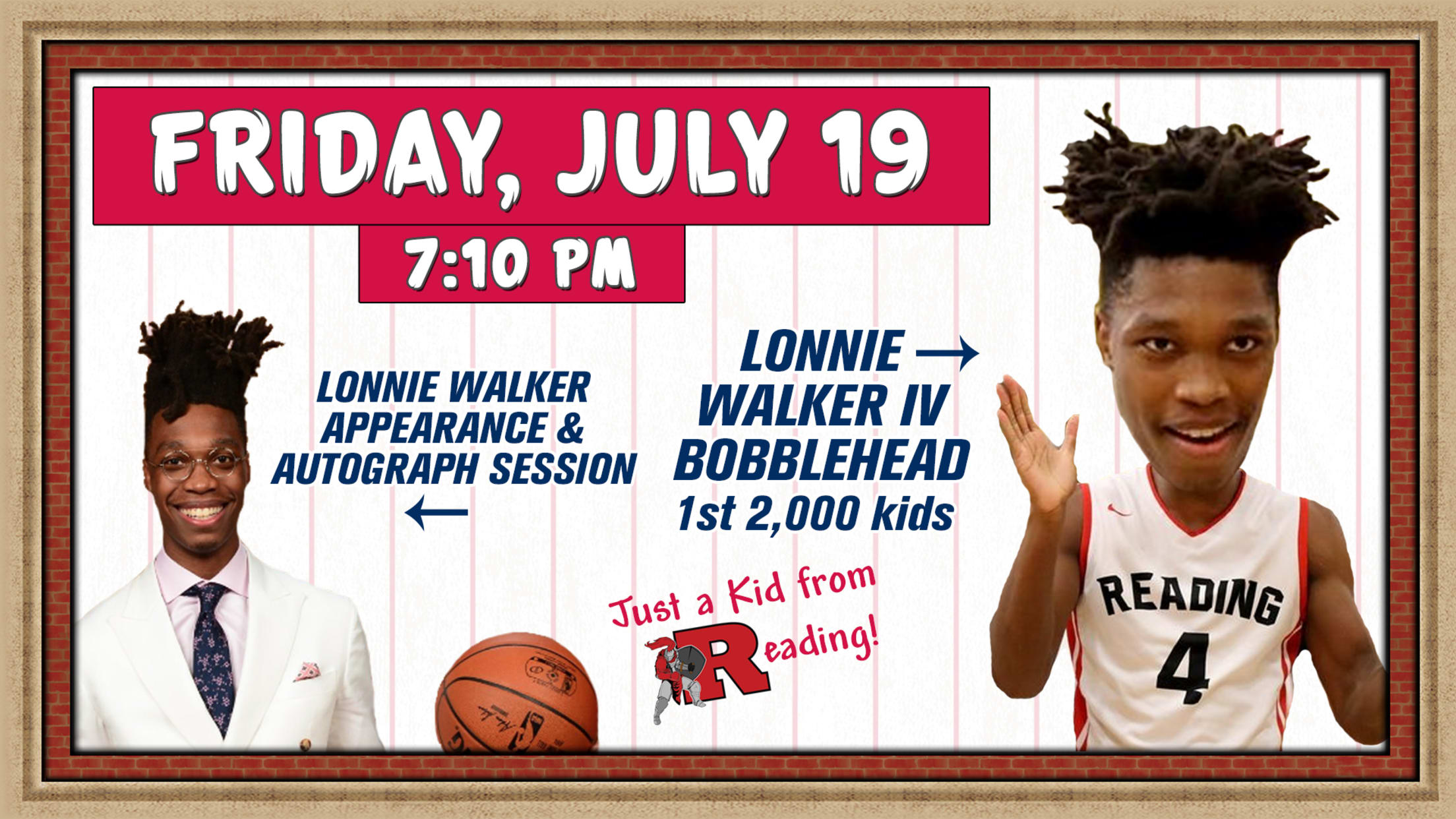 The Reading Fightin Phils will celebrate former Reading High School basketball star Lonnie Walker IV on Friday, July 19th with a Lonnie Walker "I'm Just a Kid from Reading Hometown Hero" Bobblehead giveaway, thanks to Savage 61 Chrysler, Dodge, Jeep, RAM.The first 2,000 kids in attendance at FirstEnergy stadium will
