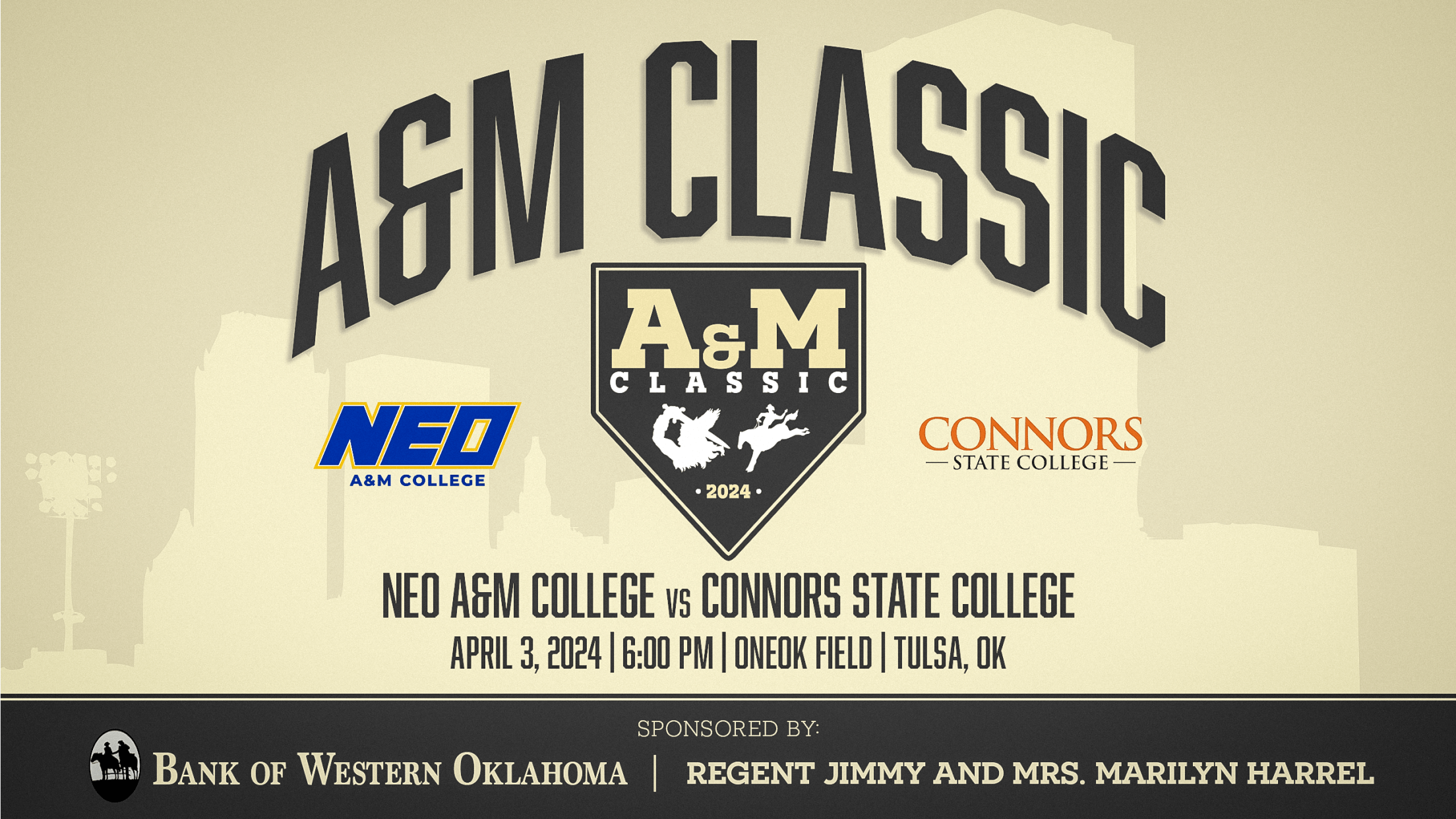The Northeastern Oklahoma A&M College and Connors State College baseball teams will play in the first-ever A&M Classic on Wednesday, April 3 at ONEOK Field in Tulsa's historic Greenwood District. First pitch for the Classic between the Golden Norsemen and the Cowboys is scheduled for 6:00 p.m.