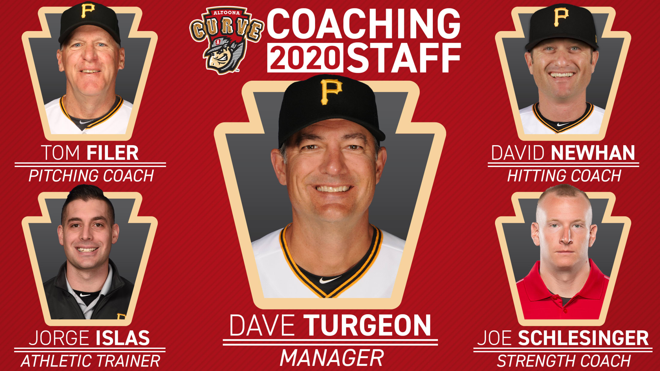 Turgeon, 54, enters his 10th season as a coach in the Pirates system and will be joined by pitching coach Tom Filer and new hitting coach David Newhan. Jorge Islas will be another new face in the dugout as the Athletic Trainer while Joe Schlesinger returns for his fourth season as the Curve's Strength and Conditioning Coach.