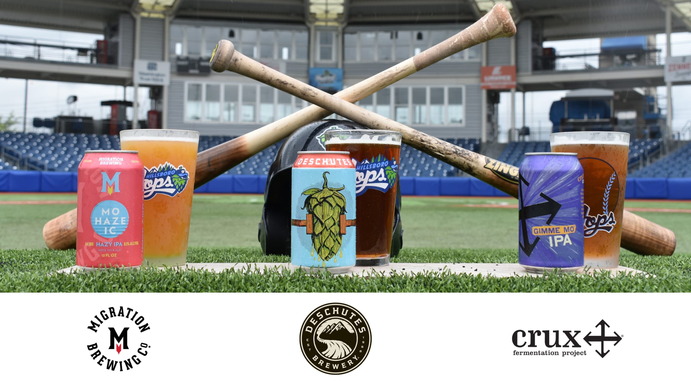 Hillsboro, OR (May 15, 2019) - The Hillsboro Hops (@HillsboroHops) announced today that they have entered into partnerships with three award-winning breweries, who are all Oregon-based - Deschutes Brewery (@DeschutesBeer), Migration Brewing (@MigrationBrew) and Crux Fermentation Project (@CruxBrew).Starting this season, the popular brews will be available at point of purchase