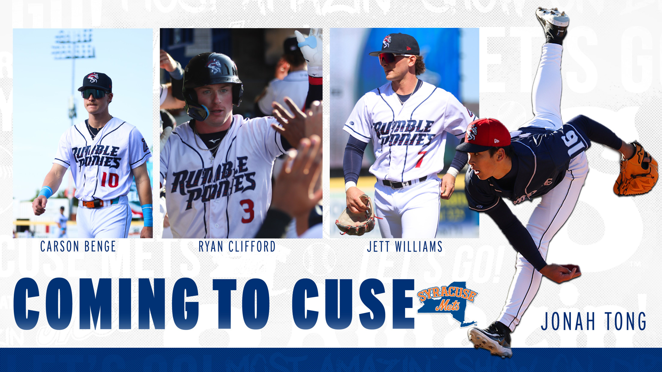 SYRACUSE, NY – The first-place Syracuse Mets are adding four of the top players in the New York Mets’ minor league system to Syracuse’s roster. The New York Mets have promoted prospects Jett Williams, Jonah Tong, Carson Benge, and Ryan Clifford from the Double-A Binghamton Rumble Ponies to Triple-A Syracuse