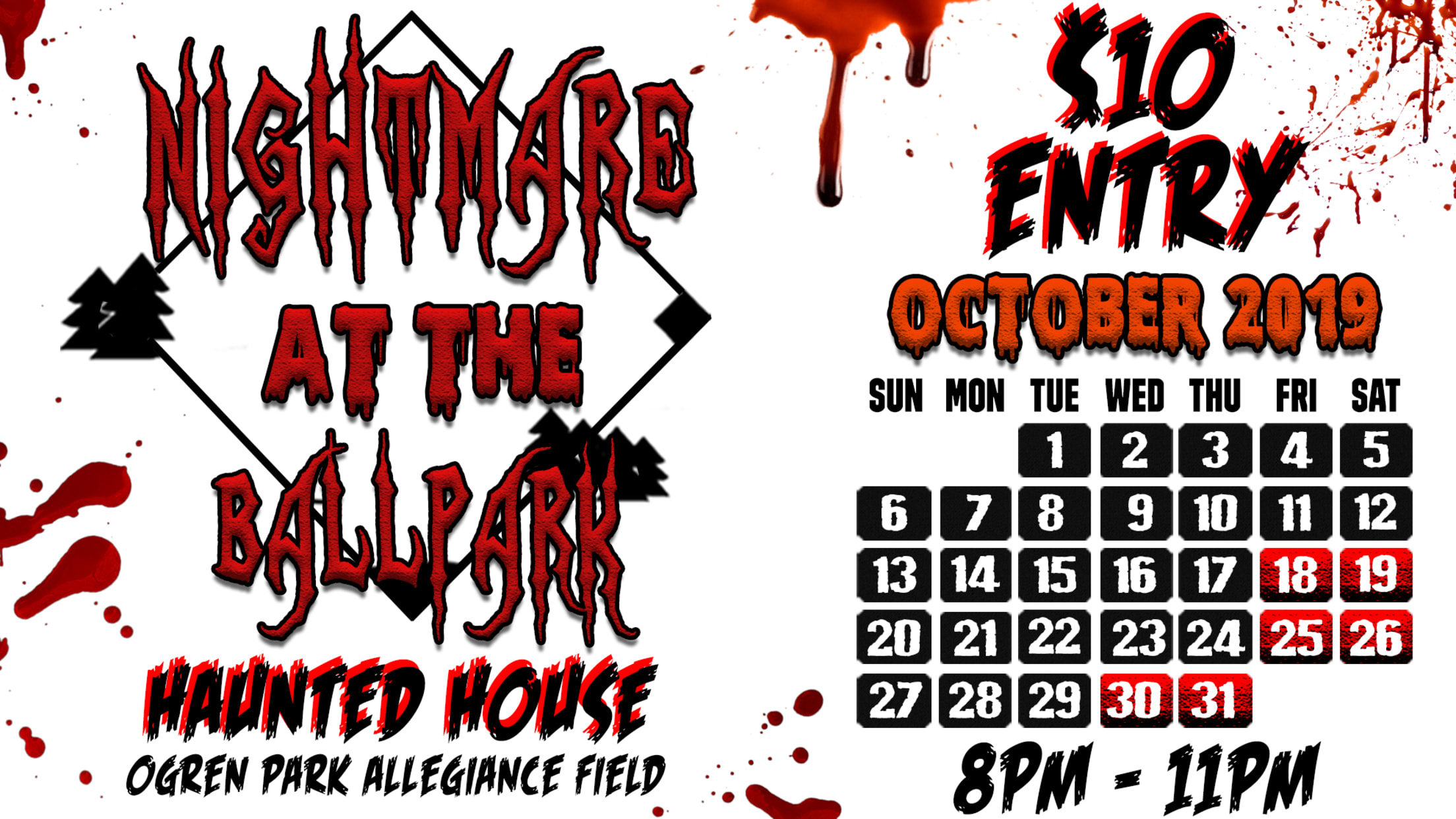 For just $10 a ticket, guests will be invited to tour the transformed Ogren Park Allegiance Field Clubhouses and experience 10 scenes that will be sure to leave you feeling haunted!