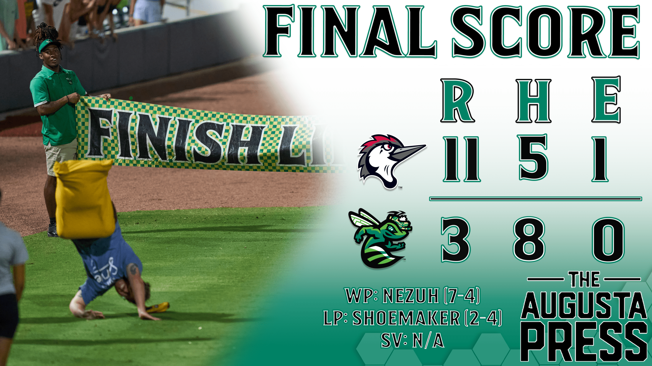 The GreenJacket offense faced a nearly insurmountable task before the leadoff man even stepped into the box, and it didn’t help matters that Jackson Nezuh, the Carolina League leader in strikeouts, was on the mound. With a gargantuan cushion to throw with, Nezuh was rock solid, firing 5 innings and allowing 2 runs while striking out 8 for his 7th win of the year and 3rd against the GreenJackets. Augusta’s two runs against the starter came via RBI singles from Kade Kern and Jacob Godman, as both continued their hot starts to July.