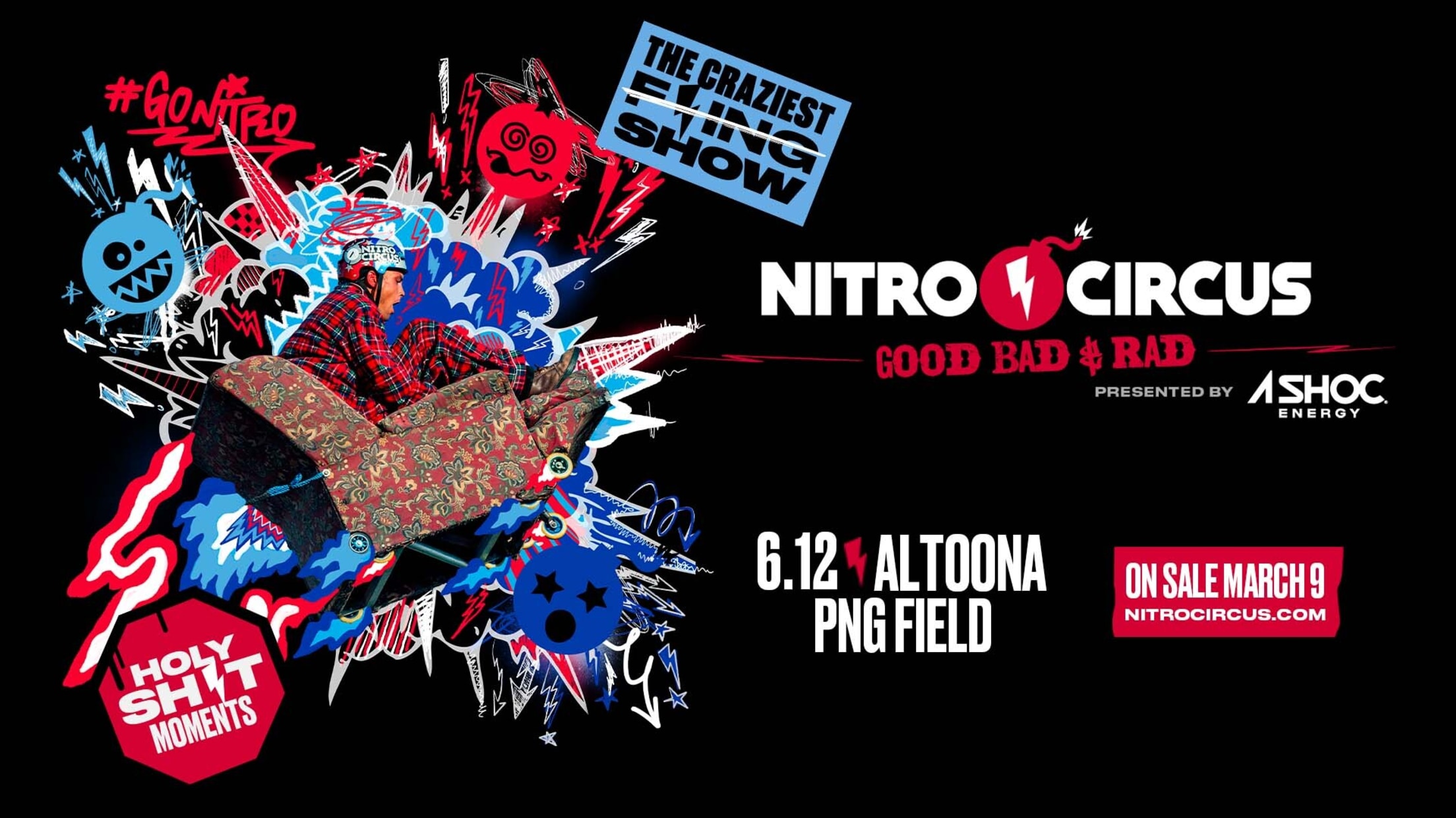 Produced by Nitro Circus, the tour will take over outdoor stadiums across North America including a June 12 Altoona show at PNG Field. Tickets will be available for purchase at nitrocircus.com beginning Wednesday, March 9 at 10 AM.
