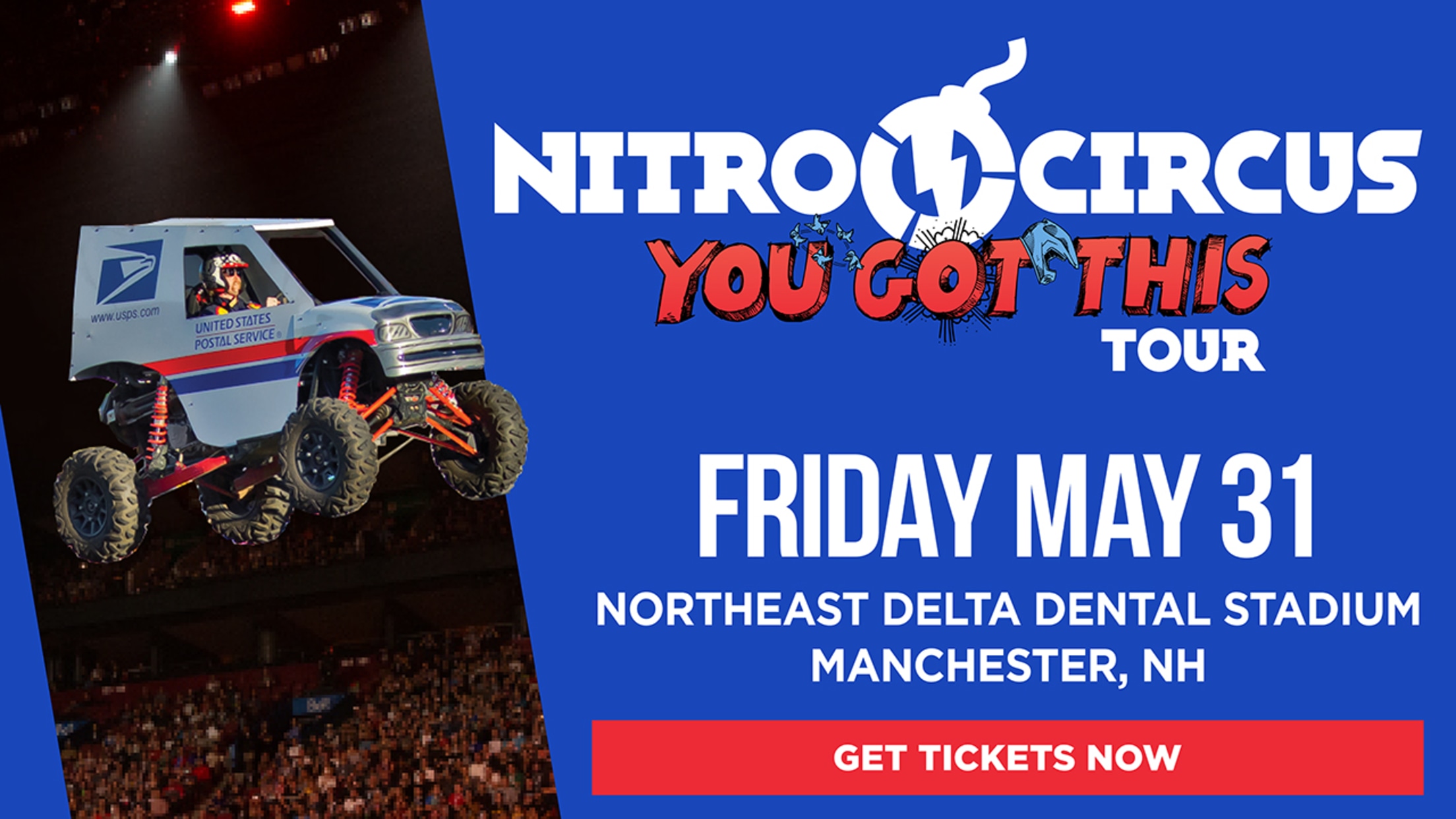 Manchester, NH - In 2018 Nitro Circus launched its all new You Got This show, performing in some of the world's most famous arenas and wowed crowds all across the globe. Now the crew is ready to take 2019 by storm by bringing the adrenaline charged You Got This to outdoor venues across the United States, including Northeast Delta Dental Stadium on Friday, May 31st at 7 p.m., for the first time.