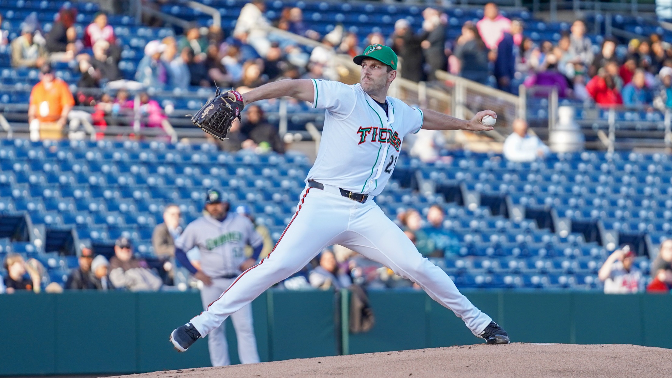 In the bottom of the sixth, the Tides loaded the bases following two straight singles from Kyle Stowers and Haskin and a walk issued to McKenna. Then, Handley drew a five pitch walk to bring home Stowers and cut the deficit to 4-3.