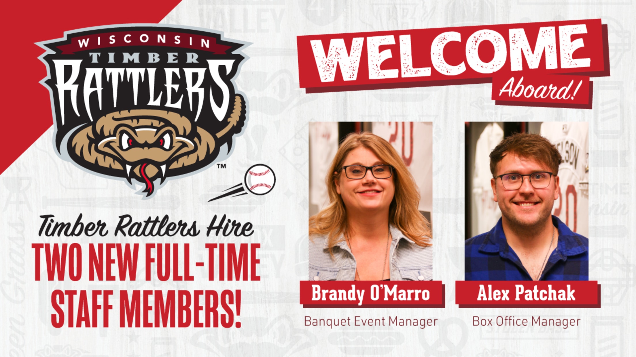 GRAND CHUTE, WI – Two new members of the Wisconsin Timber Rattlers front office are in place to start preparations for the 2023 season. Brandy O’Marro and Alex Patchak have joined the Midwest League affiliate of the Milwaukee Brewers.
