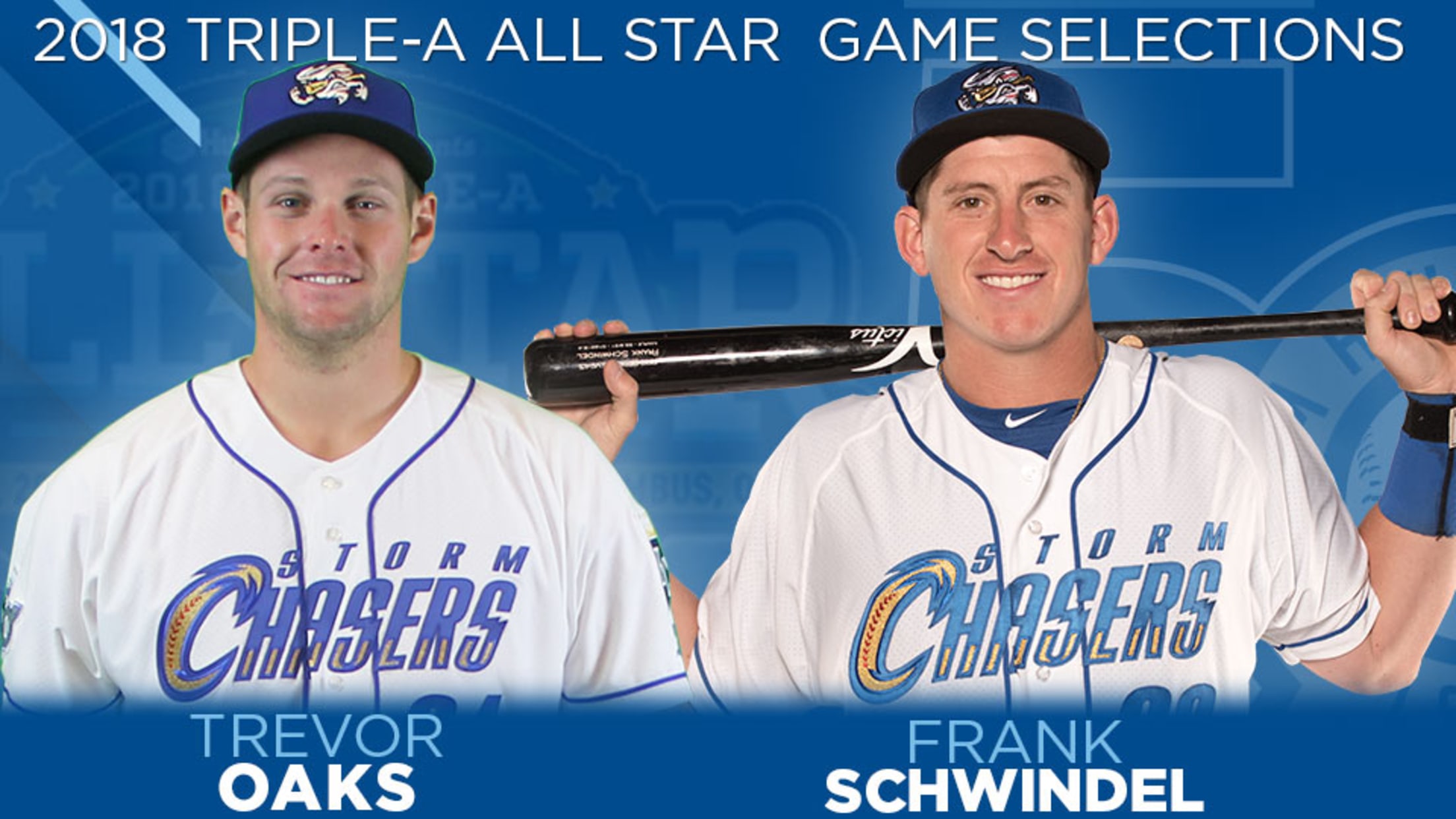 The Pacific Coast League announced on Thursday that Storm Chasers right-handed pitcher Trevor Oaks and infielder Frank Schwindel have been named to the Pacific Coast League's All-Star Squad for the 2018 Triple-A All-Star Game. The contest will be played on July 11, 2018 at Huntington Park in Columbus, Ohio.