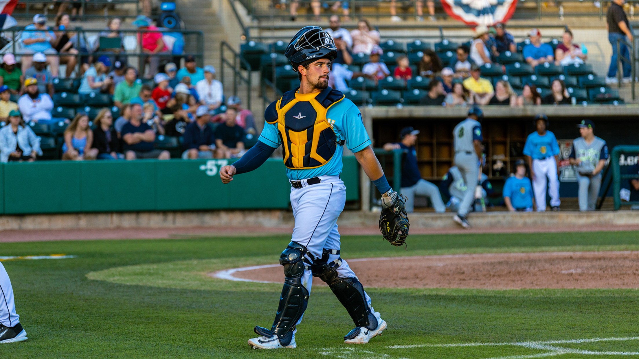 Consecutive one-out singles by Ryan Spikes and Isaac in the fifth set the table for Keegan again. The catcher bounced a ball toward pitcher Ben Sears on the mound. Sears deflected the ball toward second base with his glove, but no out could be recorded as Spikes crossed the plate to make it 5-2.