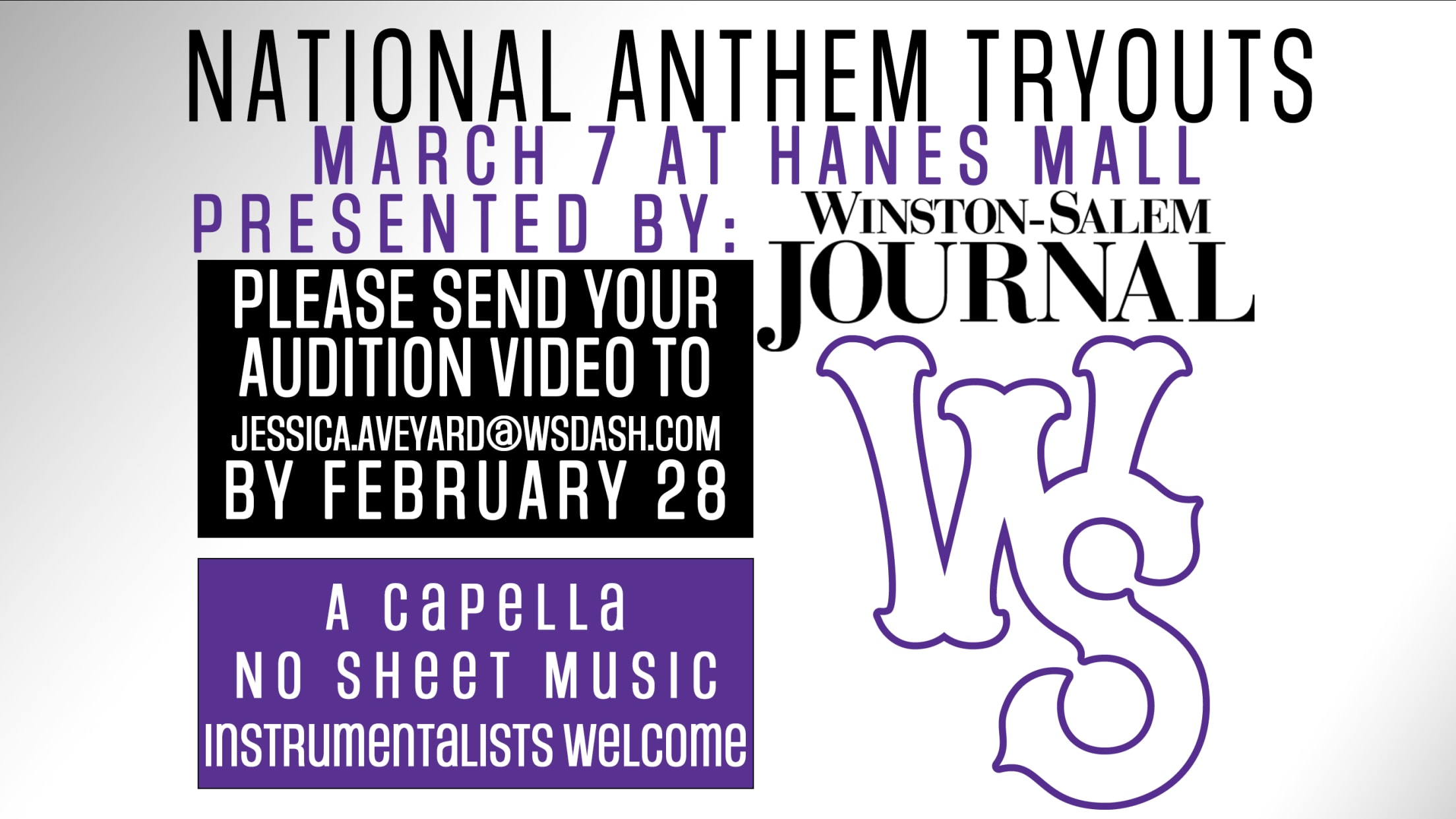 WINSTON-SALEM, N.C. (Feb. 7, 2020) - The Dash and the Winston-Salem Journal will once again host National Anthem Tryouts for the general public. On Saturday, March 7, we will be hosting Tryouts from 11 a.m. to 1 p.m. on the lower level of Hanes Mall, below the food court. There will be two rounds of auditions.