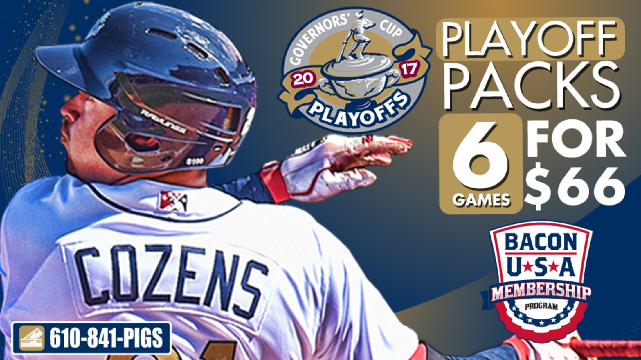 With the IronPigs off to their best start in franchise history, the club will put six-pack playoff packs on sale to Bacon, USA, Members and the general public this July. Tickets prices remain unchanged for the postseason, with playoff six-packs starting at just $66 each ($11 per game) for Field Level seats and $96 each ($16 per game) for Coordinated Health Club Level seats. In the event of unplayed games, the remaining dollar value will be credited towards a Bacon, USA, Membership or individual game purchase in 2018.