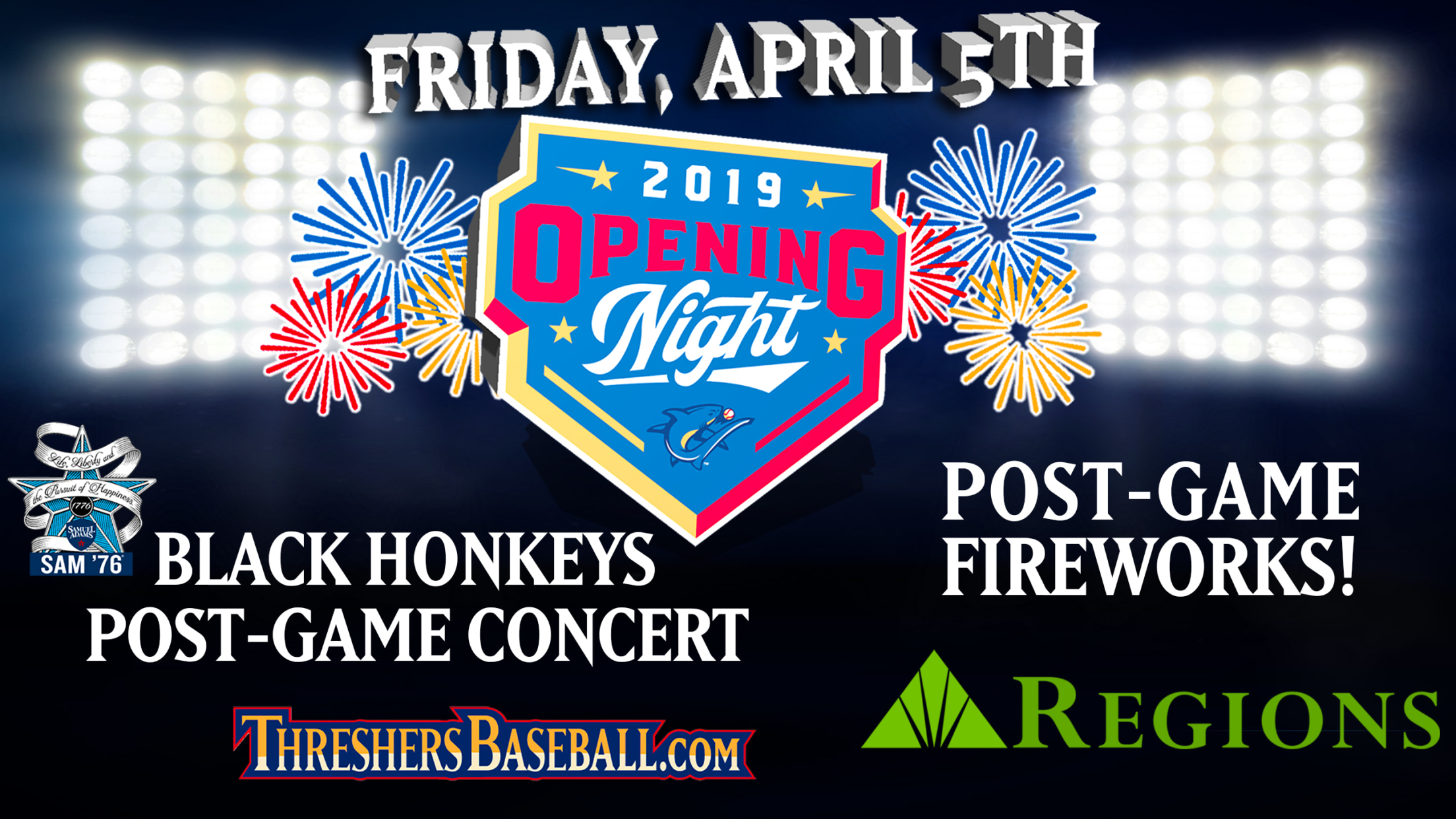 Opening Night presented by Regions Bank launches the 2019 home schedule at Spectrum Field on Friday, April 5! Fans can stay for an amazing fireworks display after the game, and catch local favorites, The Black Honkeys for a concert at the Tiki Pavilion on the left field concourse.