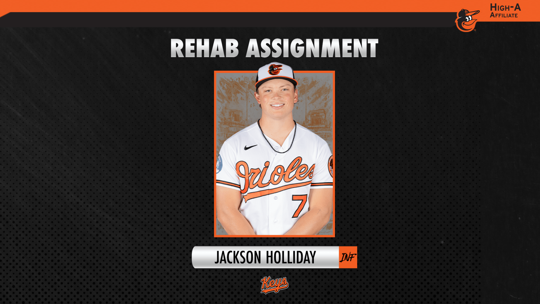 FREDERICK, MD – The Frederick Keys, the High-A affiliate of the Baltimore Orioles, announced Friday that current Orioles infielder Jackson Holliday is scheduled to make a rehab appearance with the club this weekend at Nymeo Field at Harry Grove Stadium. Holliday is expected to play on Saturday, April 18 and Sunday, April 19.