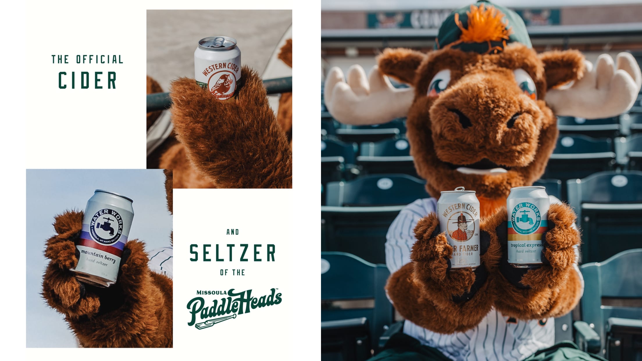 In November of 2019, Missoula’s baseball team rebranded with a goal to develop a brand that supported, strengthened, and stood alongside all things Missoula. Nineteen months, +$150,000 donated to local non-profits, +500lb of food donations, +6,000lb of trash collected from the Clark Fork River, +70 community events, and +600 hours of volunteerism later, the PaddleHeads continue that pursuit. Today, in conjunction with Draught Works Brewery and Western Cider, the PaddleHeads are proud to announce a partnership that pegs Draught Works’ “Water Works” Hard Seltzer and Western Cider’s Hard Cider as the Official Seltzer & Cider of Ogren Park Allegiance Field.