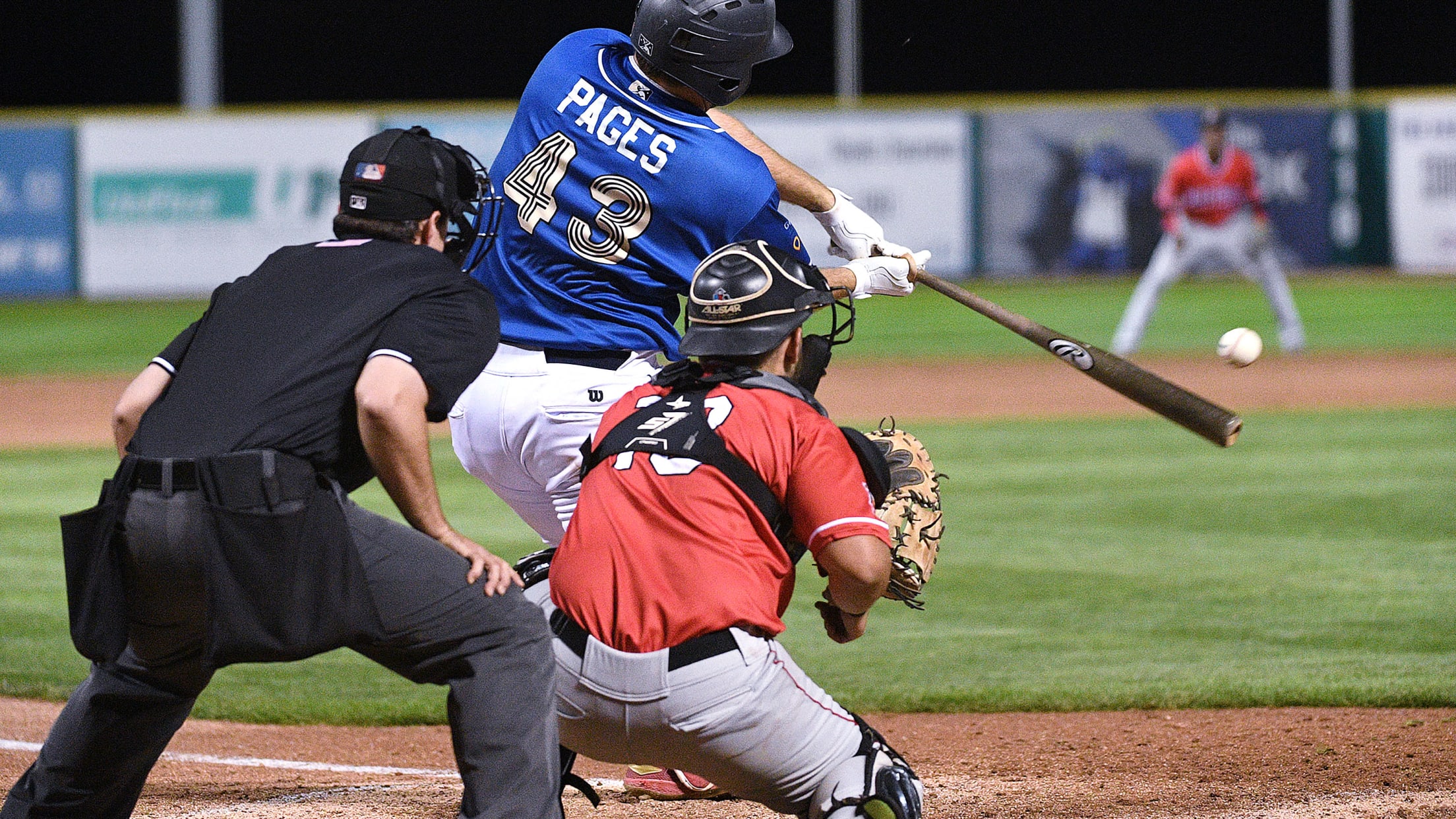 Pages started his big night in the fourth by lofting a ball down the left field line that ricocheted off the top of the wall in front of the Pepsi Picnic Pavilion to bring in