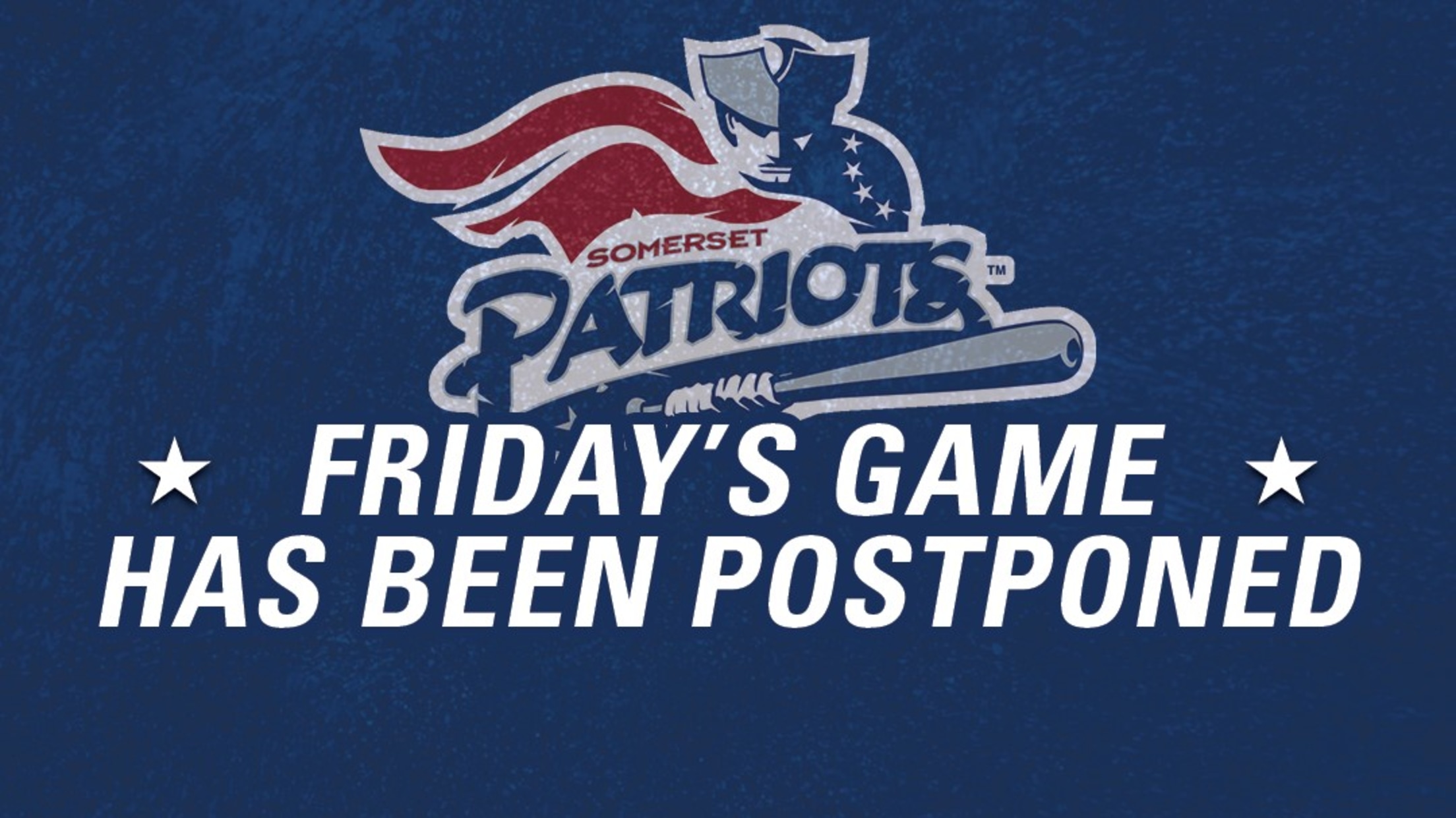 Bridgewater, New Jersey - The Somerset Patriots game scheduled for Friday, May 6 against the New Hampshire Fisher Cats at TD Bank Ballpark has been postponed due to rain.