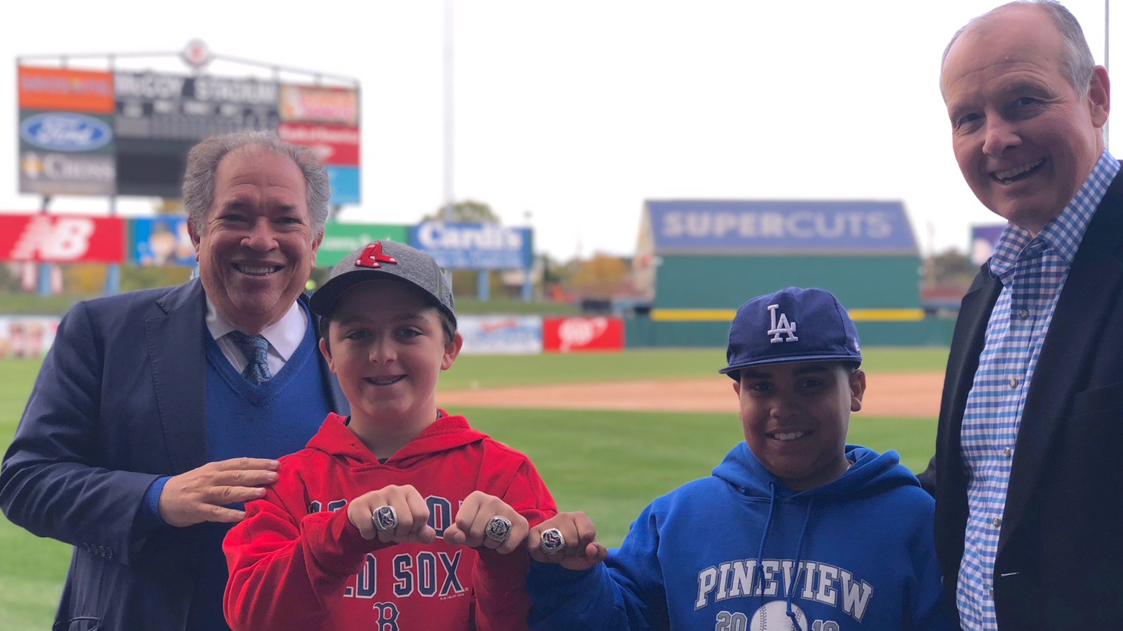 The four will enjoy seats at Fenway Park as the Red Sox play the Los Angeles Dodgers, who this year repeated as National League Champions, for the first time. More than 100 years ago, the Red Sox beat the Brooklyn Robins, forerunners of the Dodgers in the 1916 World Series.