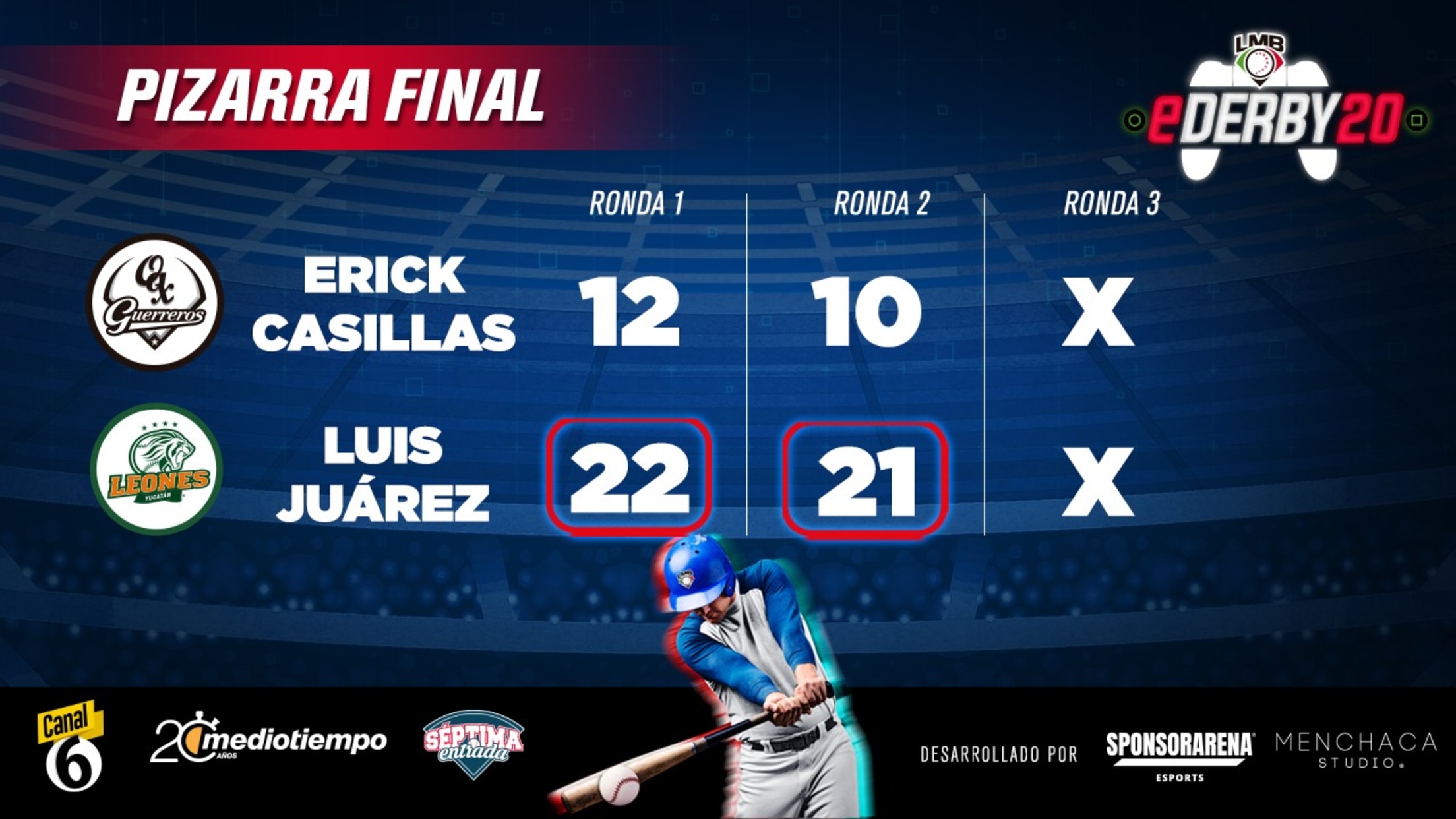 Ciudad de México (lmb.com.mx) 13 de mayo.- Luis ‘Pepón’ Juárez de los Leones de Yucatán dominó en dos rondas a Erick Casillas de los Guerreros de Oaxaca. Fue la mayor diferencia en la primera ronda del eDerby LMB 2020. El ‘Pepón’ derrotó al lanzador de los bélicos en dos capítulos: 22-12 y 21-10.