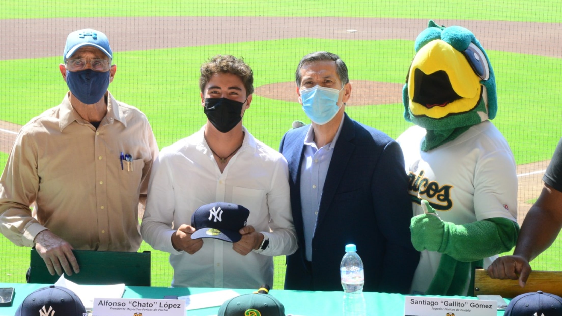 Puebla, Pue. (www.pericosdepuebla.com ) 19 de enero de 2022.- Día histórico para los Pericos de Puebla y los Yankees de Nueva York ya que concretaron la firma de Santiago "El Gallito" Gómez, (infielder), jugador surgido de la Academia de los emplumados y parte del talento joven con el que cuenta el Club.