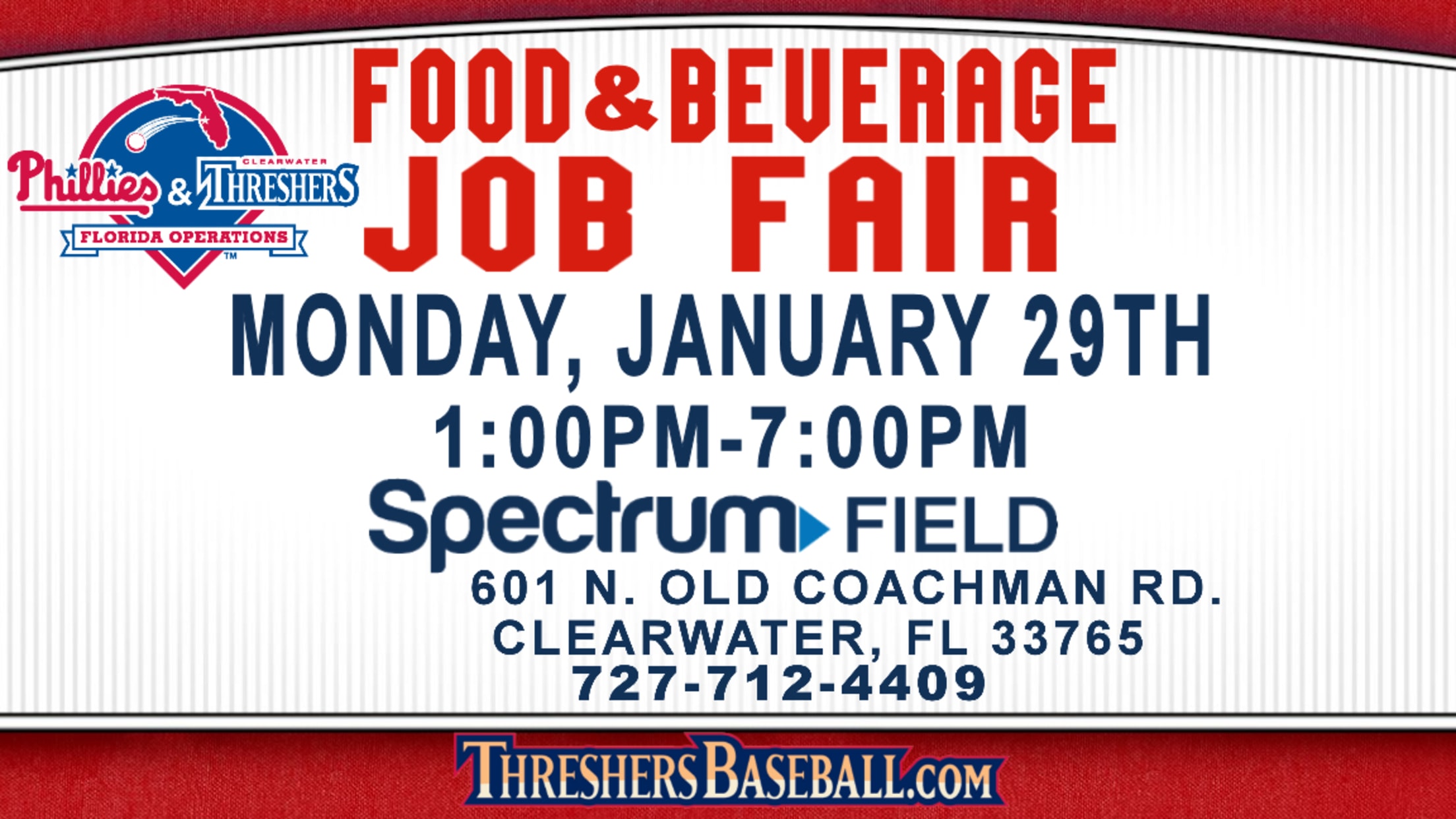 Now hiring smiles! The Clearwater Threshers and Philadelphia Phillies will be holding a Food and Beverage Job Fair at Spectrum Field on Monday, January 29, from 1:00-7:00 p.m.
