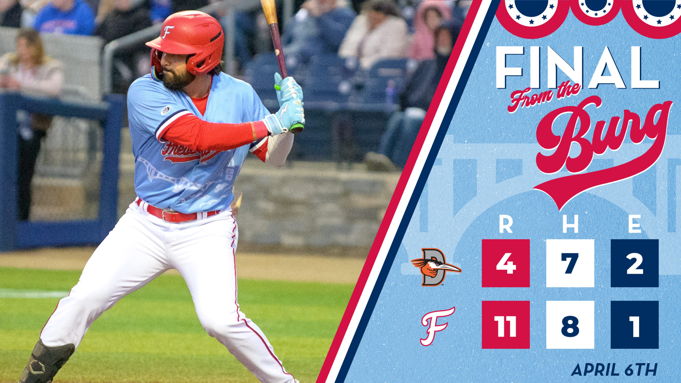 FREDERICKSBURG, VA - Brandon Pimentel drove in a franchise-record eight RBI’s as the FredNats stomped the Shorebirds 11-4.