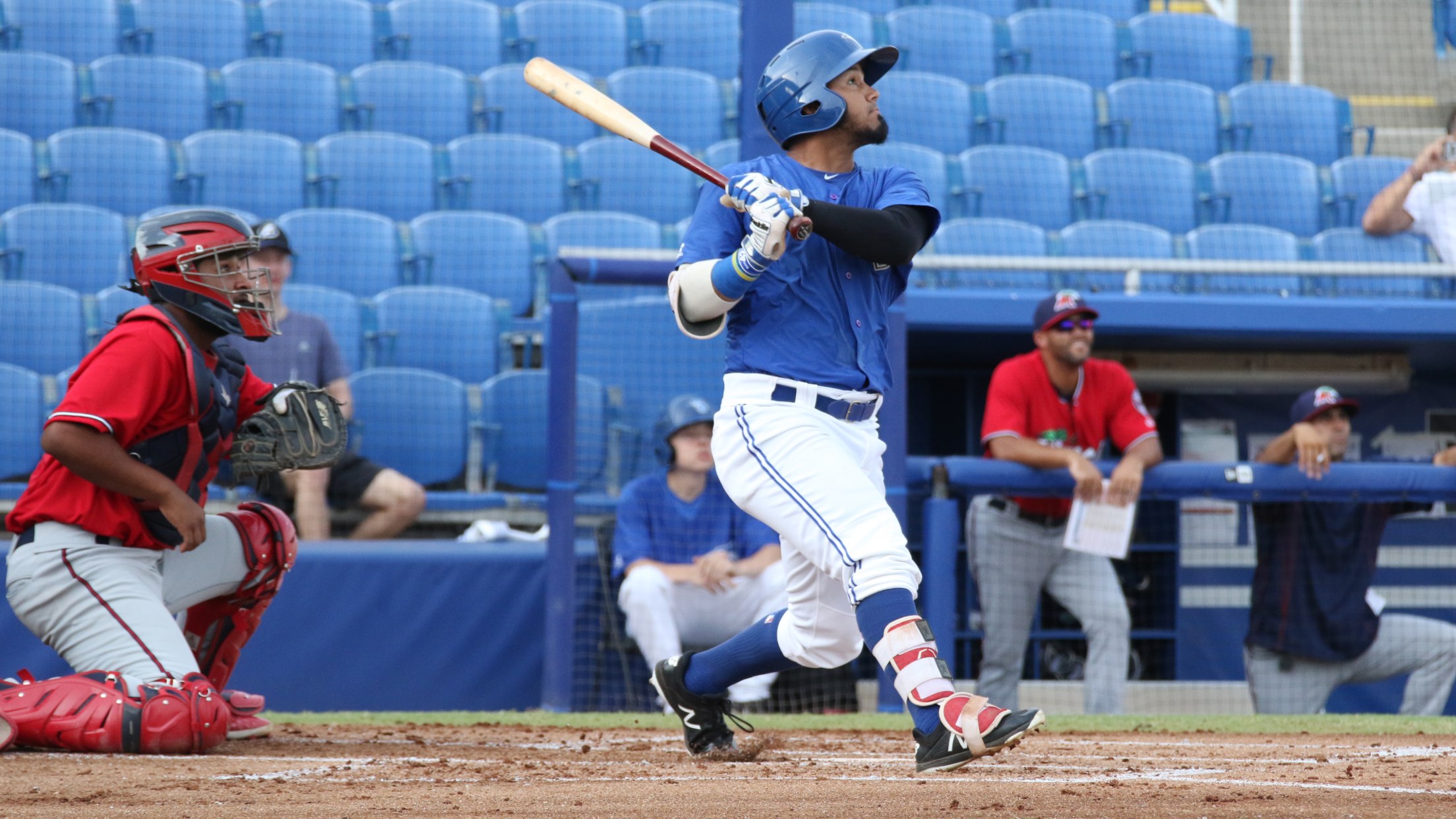 Eduard Pinto went 3-4 on Thursday night at Dunedin Stadium, knocking a go-ahead two-run homer in the seventh in Dunedin's comeback win. (Jim Goins)