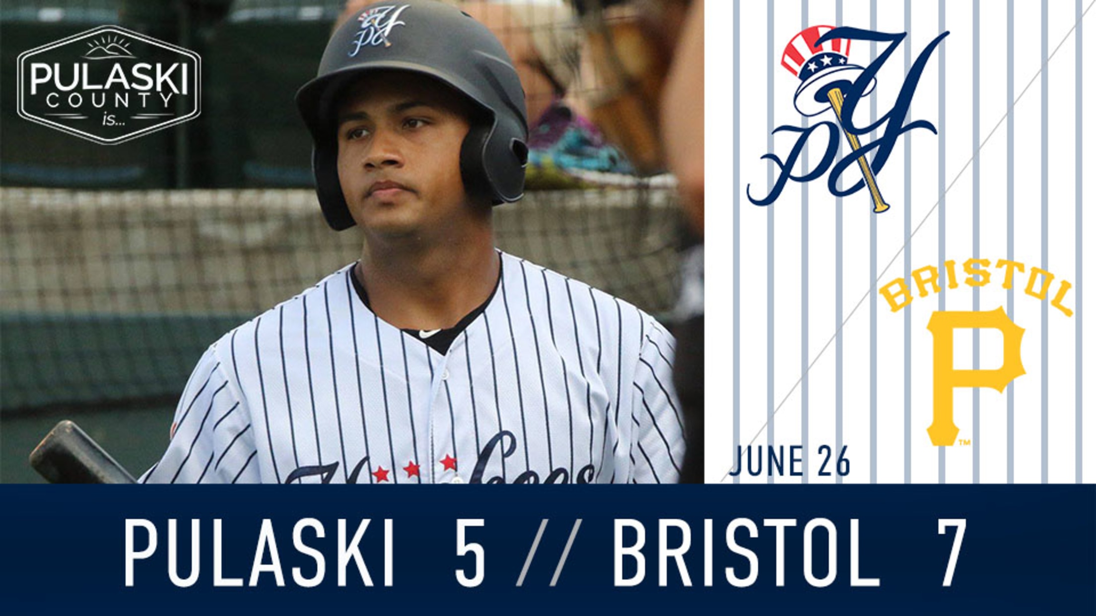 BRISTOL, Va - Cody Brown launched a three-run homer to cut the Yankees' deficit late, but the Bristol Pirates fought off Pulaski, 7-5, on Tuesday night at Boyce Cox Field. With the loss, Bristol swept Pulaski in a two game set on the road following an 82 minute rain delay before originally scheduled first pitch.